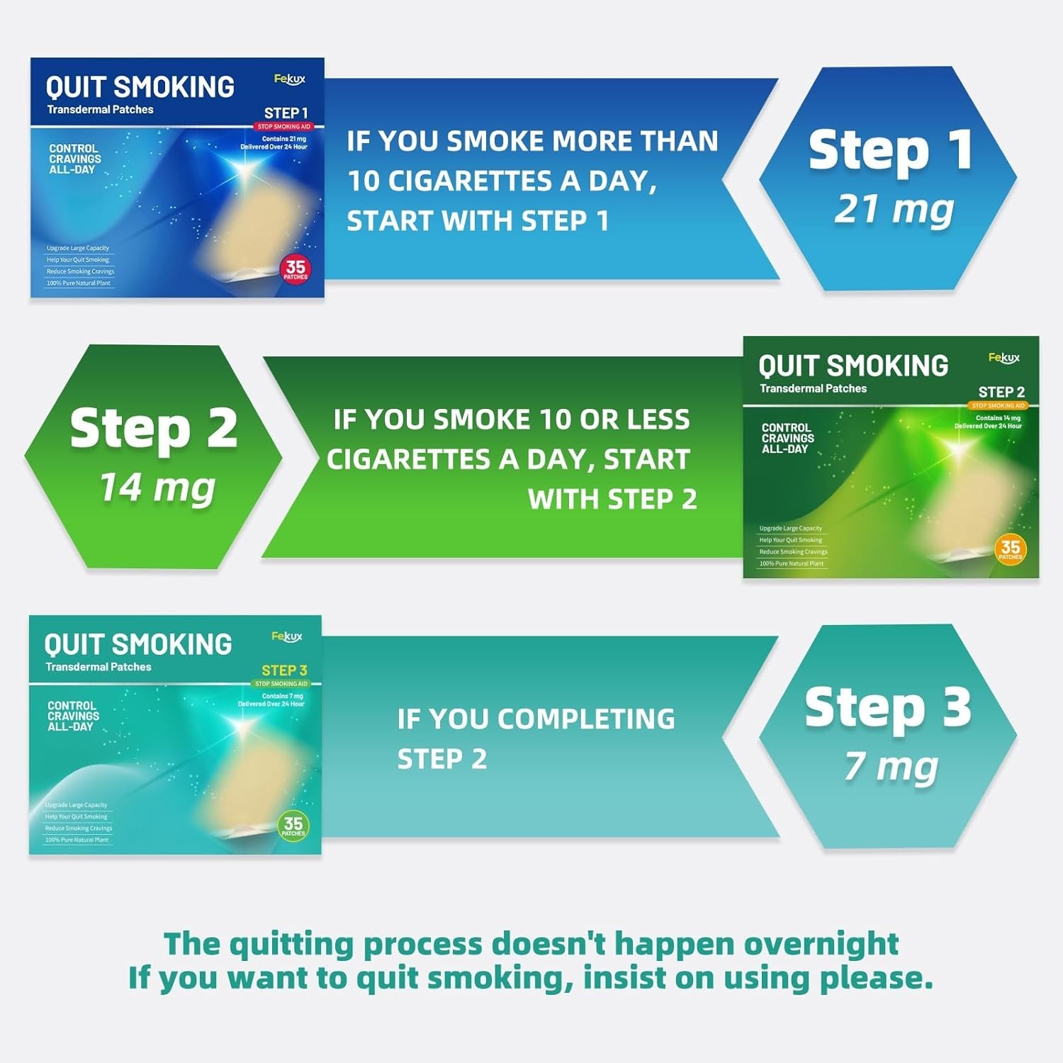 Fekux Quit Smoking Patches Step 3 7mg Final Stop Aid, 35 Nicotine Patches