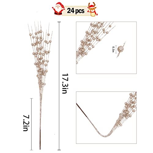 как выглядит 24 PCS Artificial Glitter Holly Berry Stem Ornaments Berry Picks Champagne фото