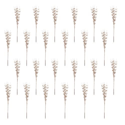 24 PCS Artificial Glitter Holly Berry Stem Ornaments Berry Picks Champagne