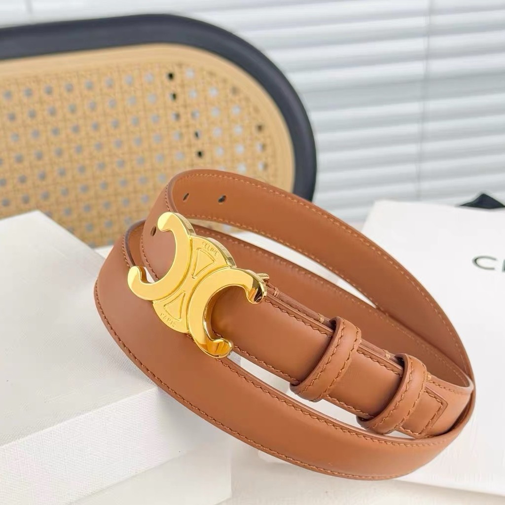 CELINE Brown Calfskin Belt with Arc de Triomphe Buckle Size 100