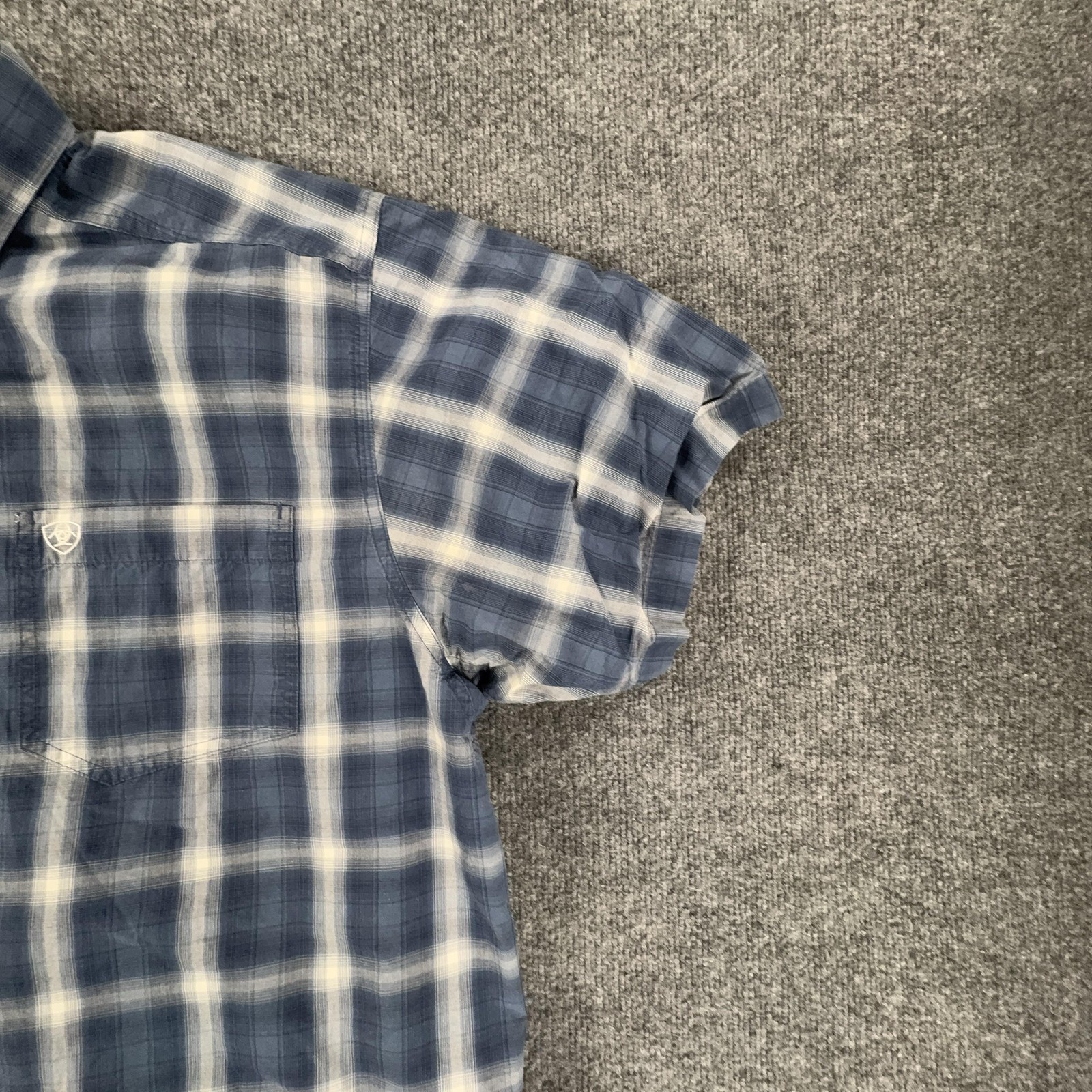 как выглядит Ariat Pro Series Shirt Mens XL Blue White Plaid Button Down Short Sleeve Mesh фото