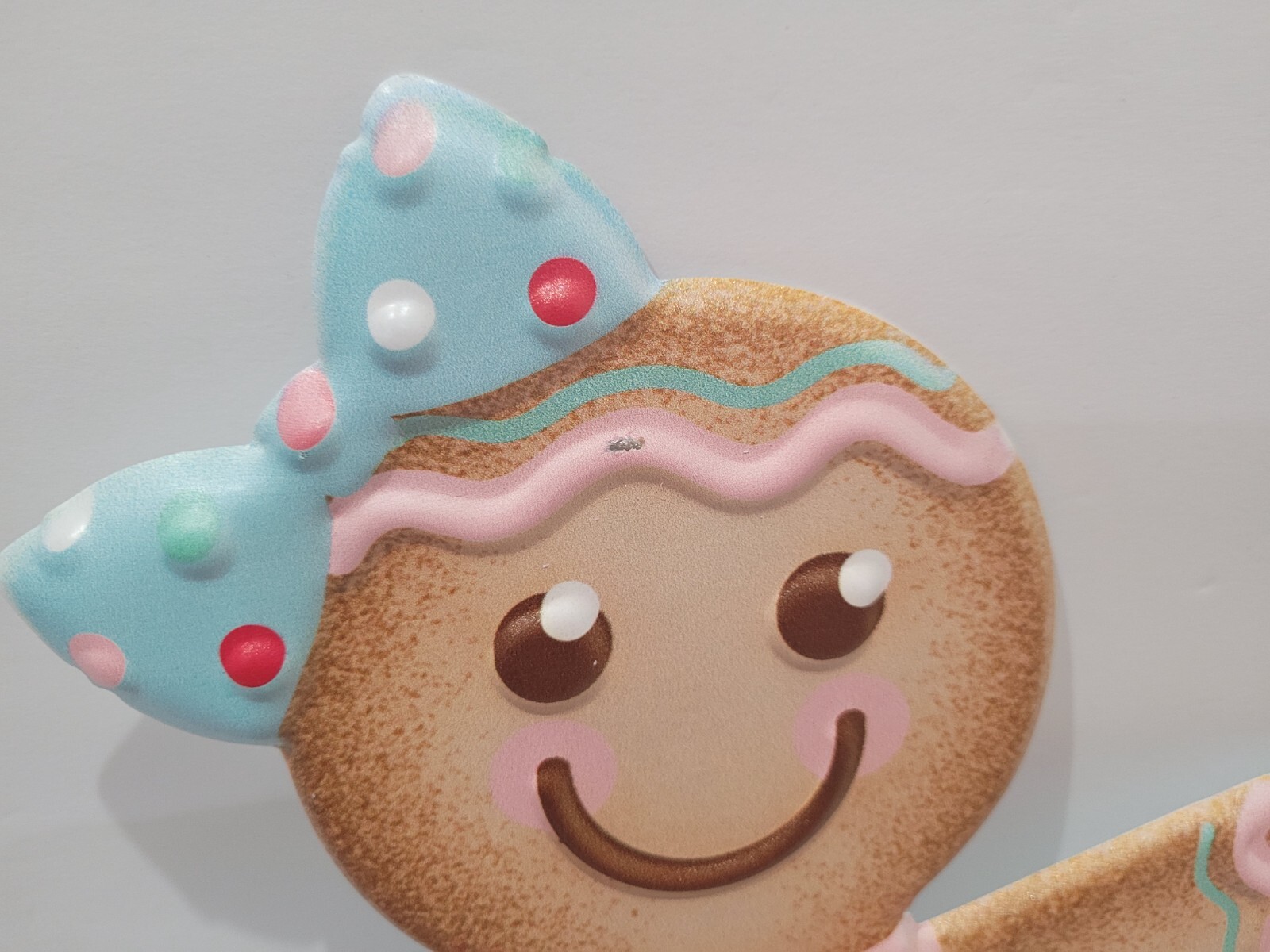 Christmas Pink Gingerbread Girl Ornament Wreath Tabletop Metal Wall Sign 13x10