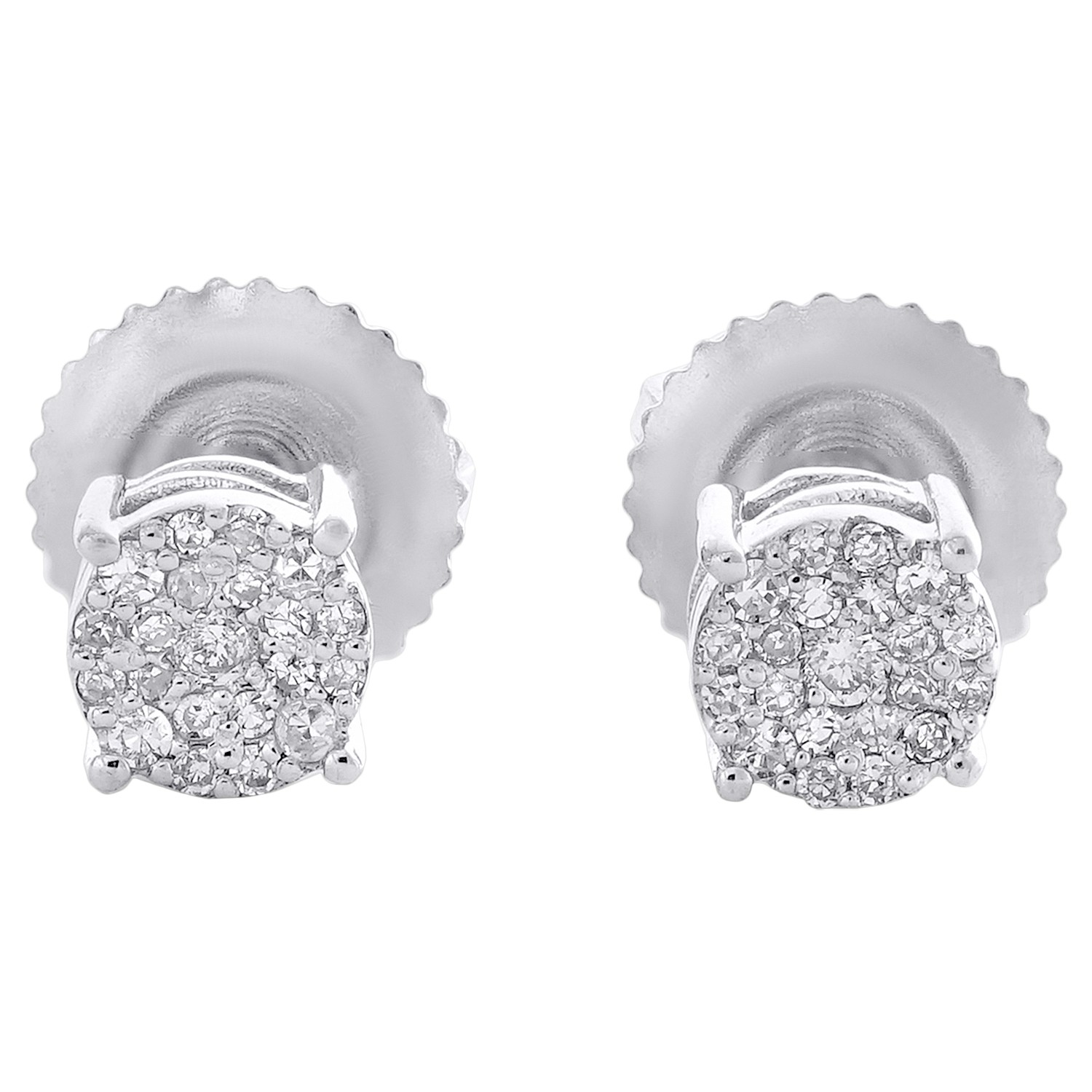 10K White Gold Natural Diamond 4mm Hip-Hop Cluster Round Stud Earrings 1/10 CT