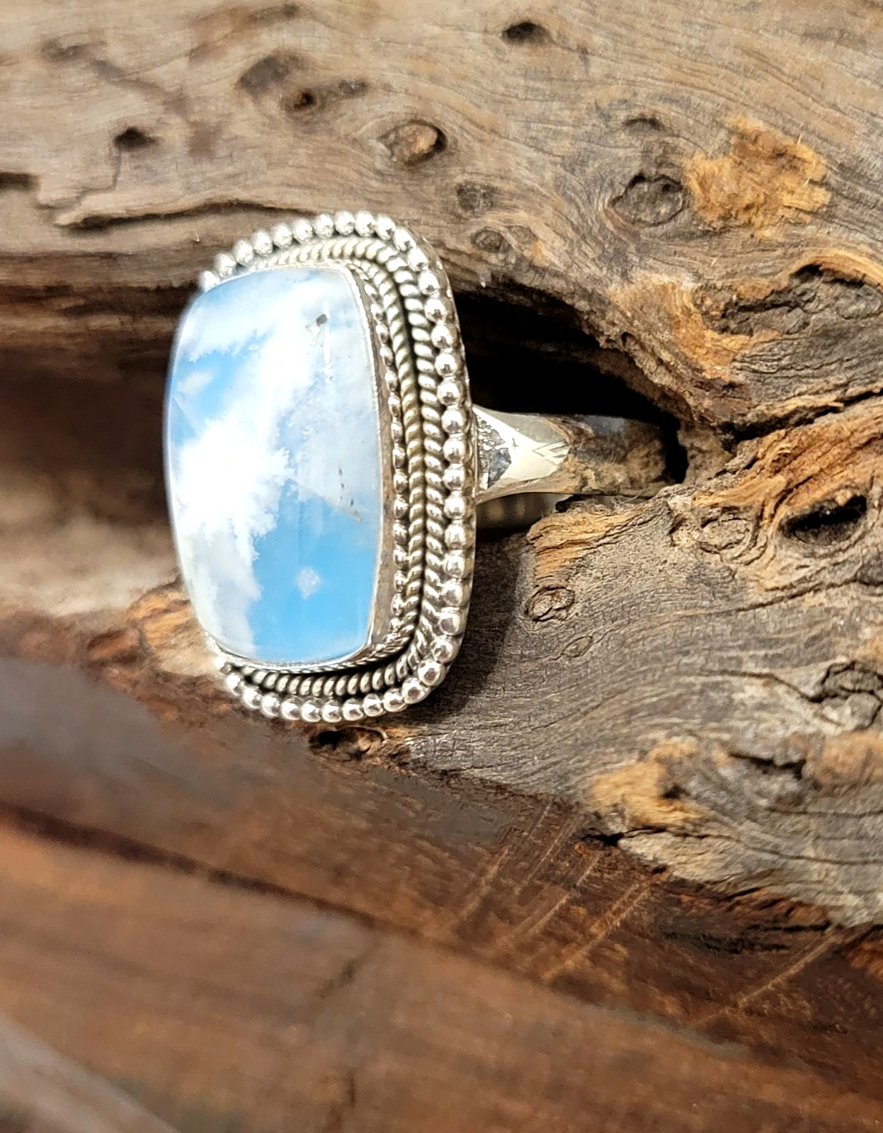 Handmade Natural Larimar Blue Stone Ring Sterling Silver Size 7 - New