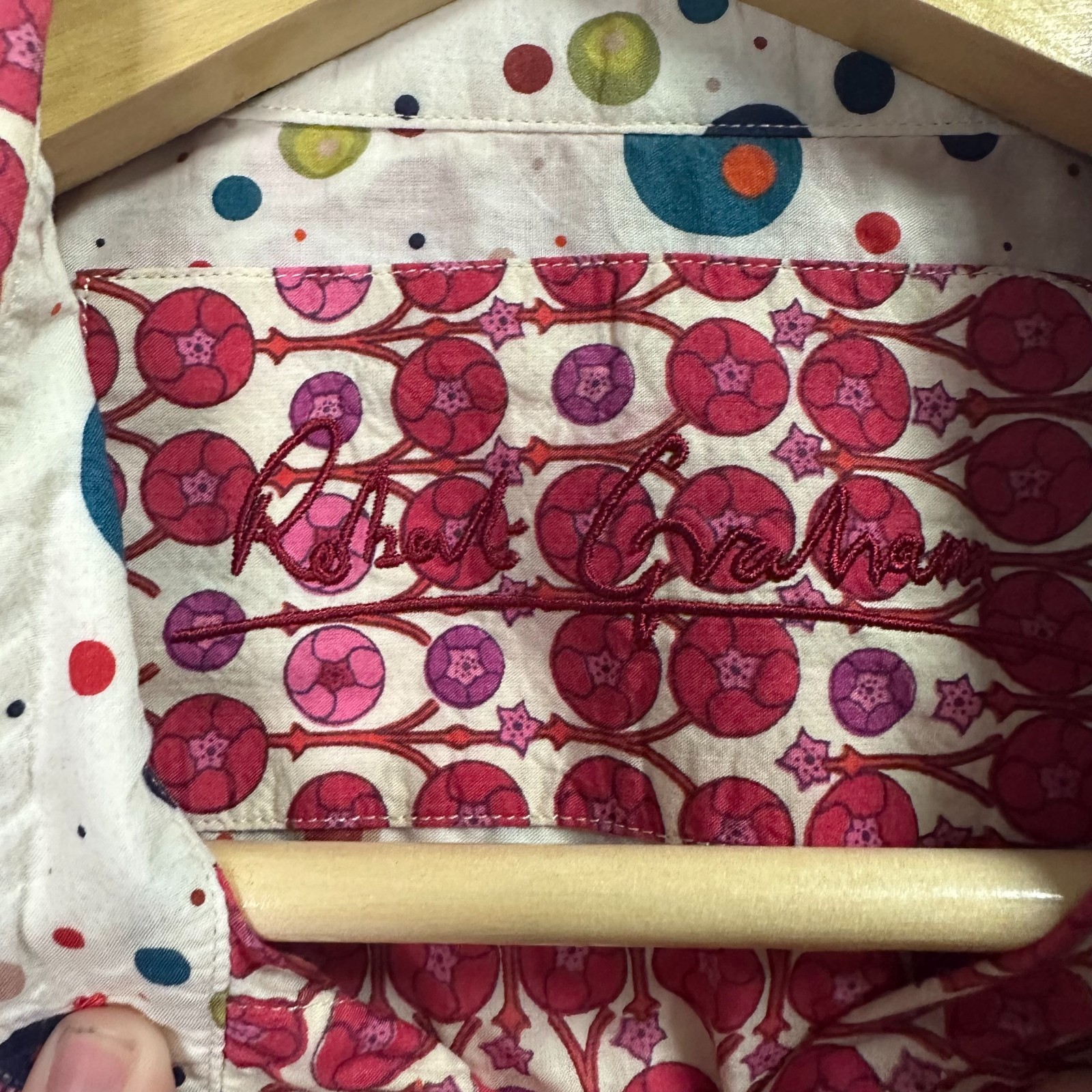 как выглядит Robert Graham Mens Button Shirt XL Red Beige Abstract Geometric Polka Dot фото