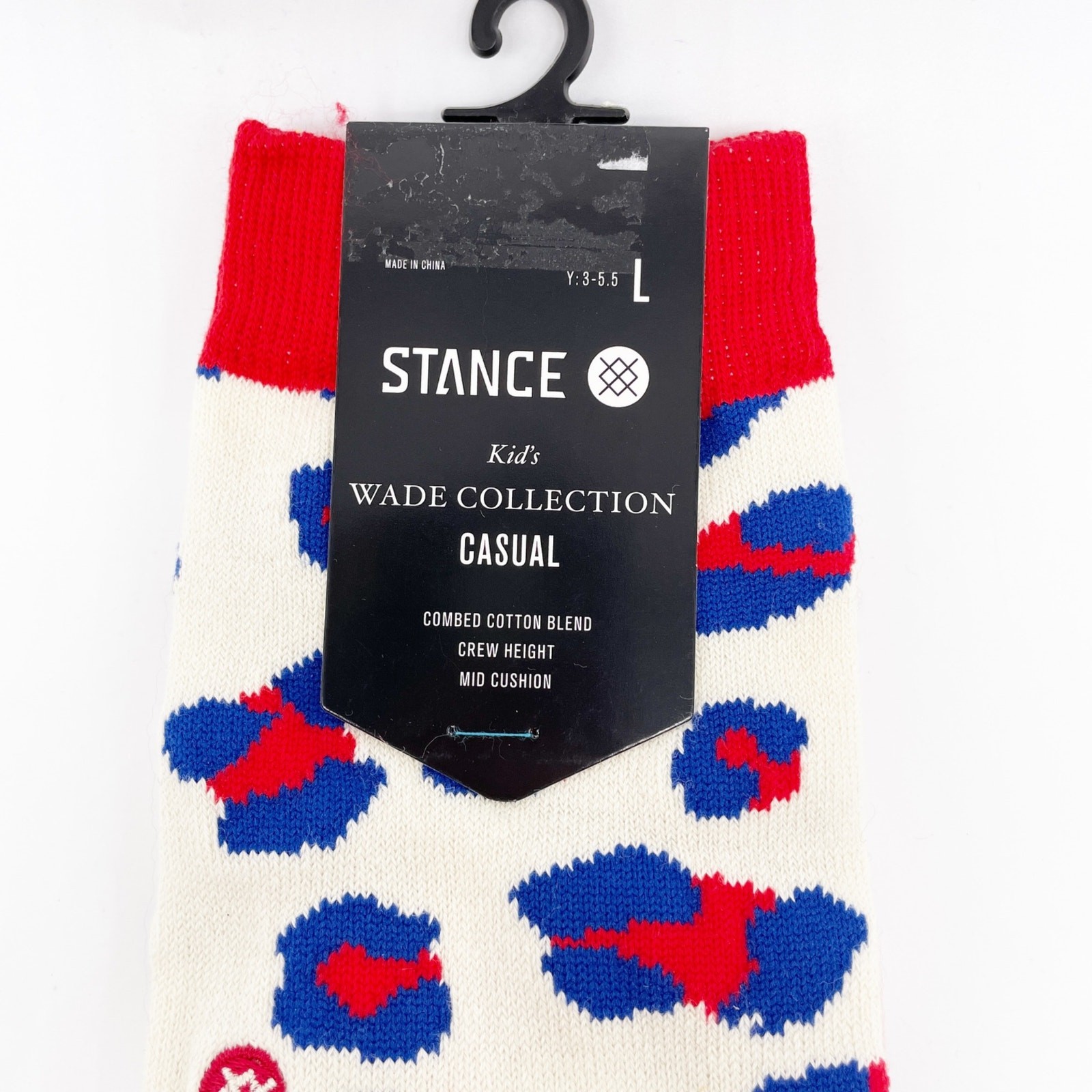 Stance Youth Kids Leopard Crew Socks Off White Red Size L 3-5.5