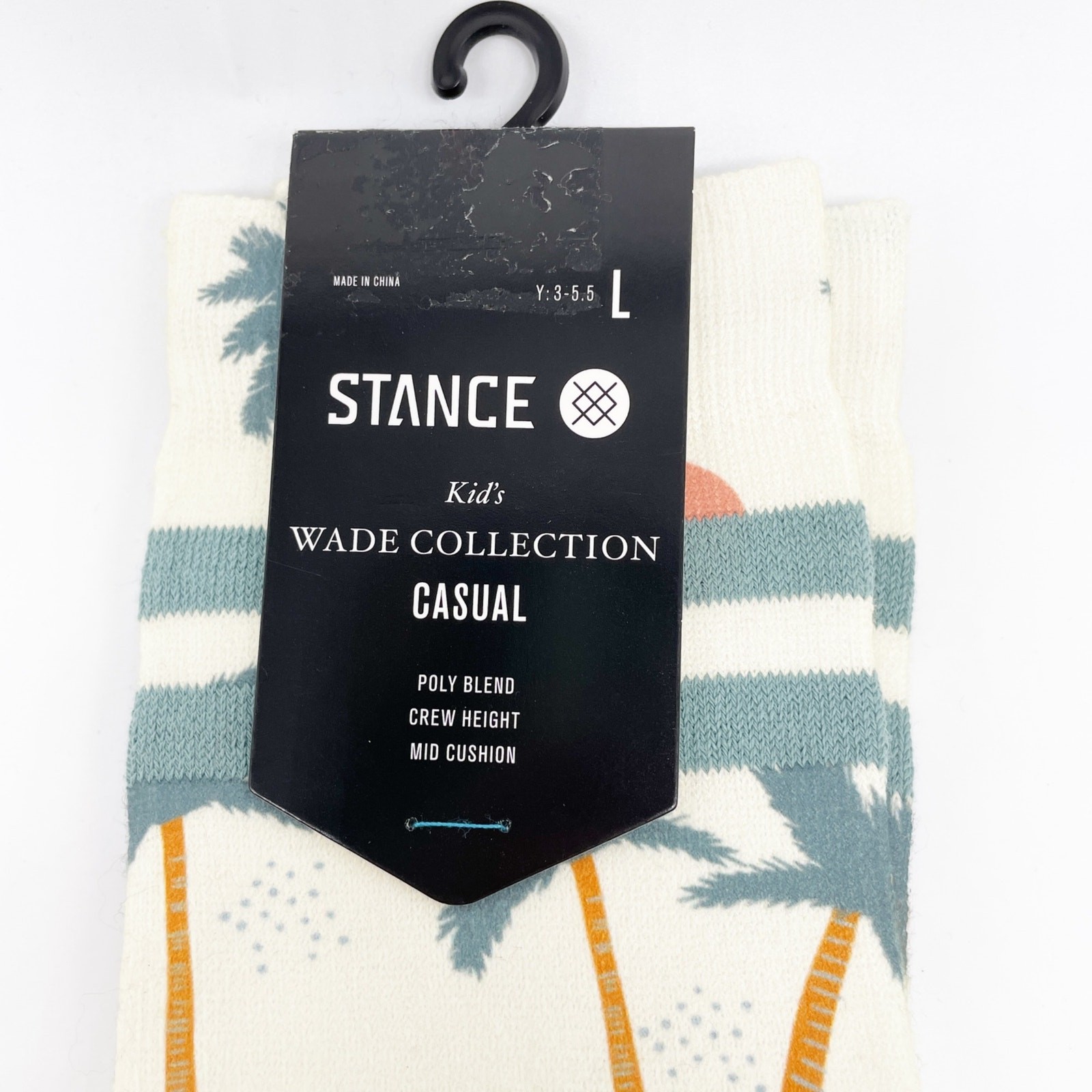 Stance Youth Kids Palm Tree Crew Socks Off White Blue Size L 3-5.5