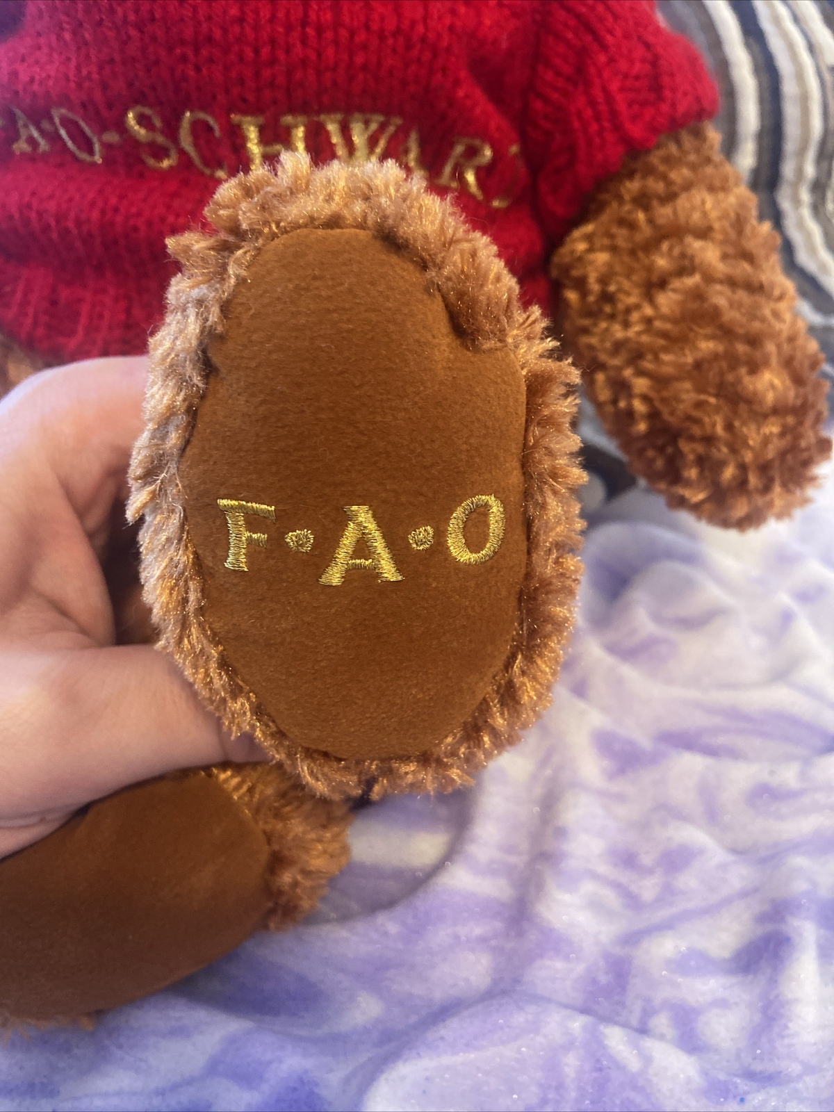 как выглядит FAO SCHWARZ Brown Teddy Bear with Red Knitted Sweater 17.5