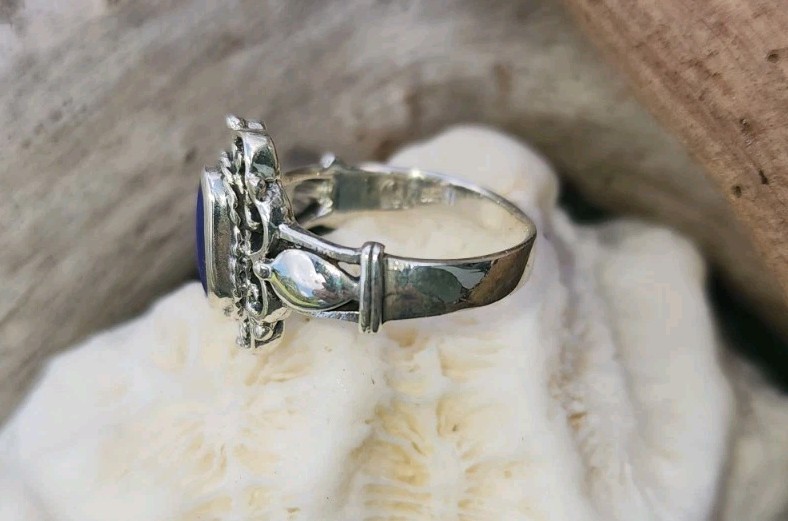 как выглядит Vintage Sterling Silver Ring with Blue Lapis Inlay, Size 7, New фото