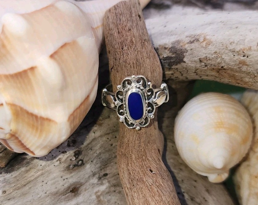 Vintage Sterling Silver Ring with Blue Lapis Inlay, Size 7, New