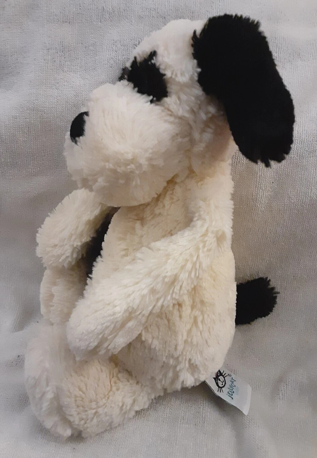 Jellycat Puppy Dog Bashful Cream Black Spot Patch Eye Floppy Beanbag 12 Plush