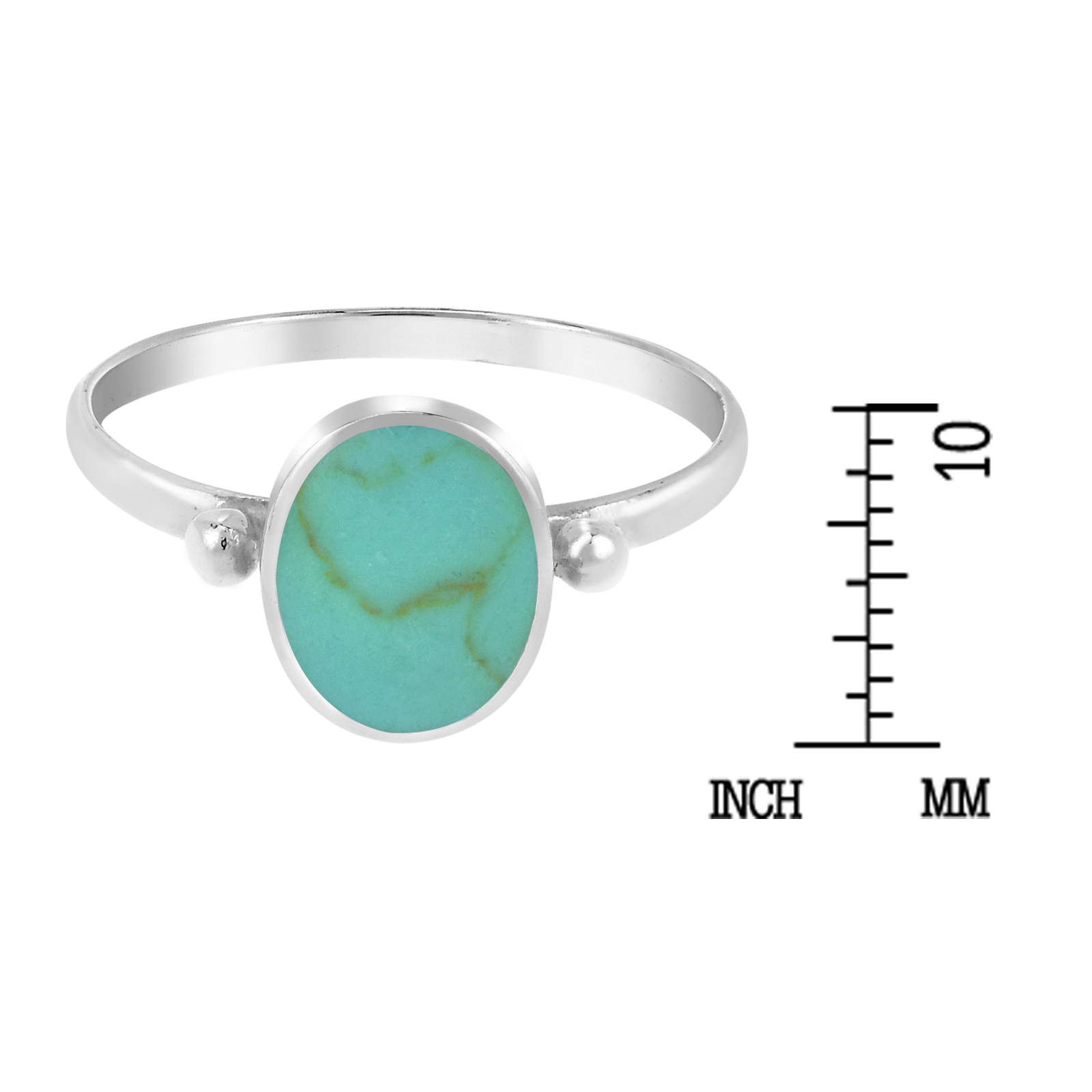как выглядит Simply Stunning Oval Shaped Green Turquoise Sterling Silver Band Ring-9 фото