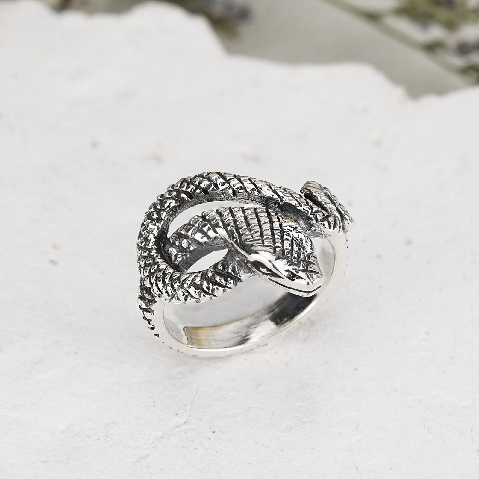 как выглядит Foxy Snake Coil Wrap Around .925 Silver Ring-11 фото