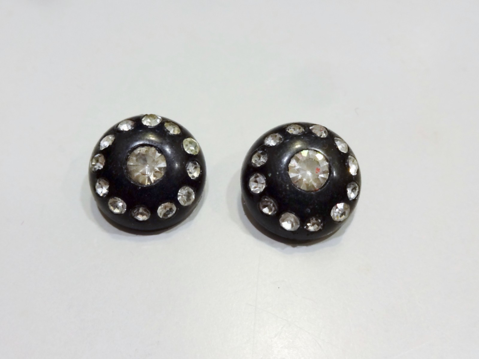 Vtg Lot 5 BLACK RHINESTONE ROUND DOME BUTTONS 7/8" 1/2" Raised Jeweled Fancy Sew