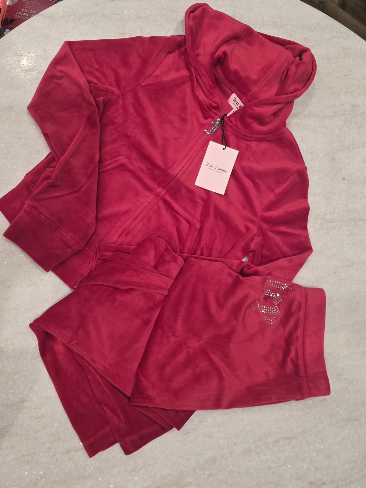 как выглядит Juicy Couture Rare Size Large Coco Red velour rhinestone bling tracksuit Y2k New фото