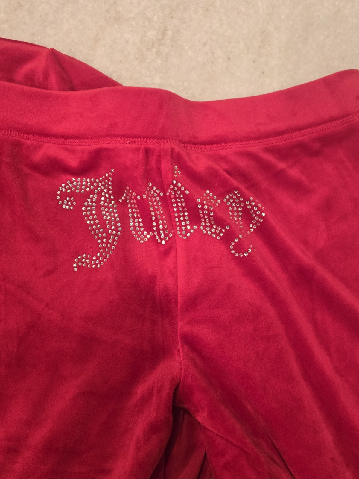 как выглядит Juicy Couture Rare Size M Coco Red velour rhinestone bling tracksuit Y2k New фото