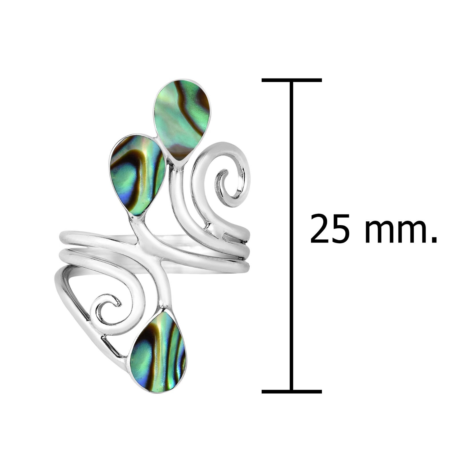 Floral Vine Ornate Teardrop Abalone Shell Sterling Silver Ring-7