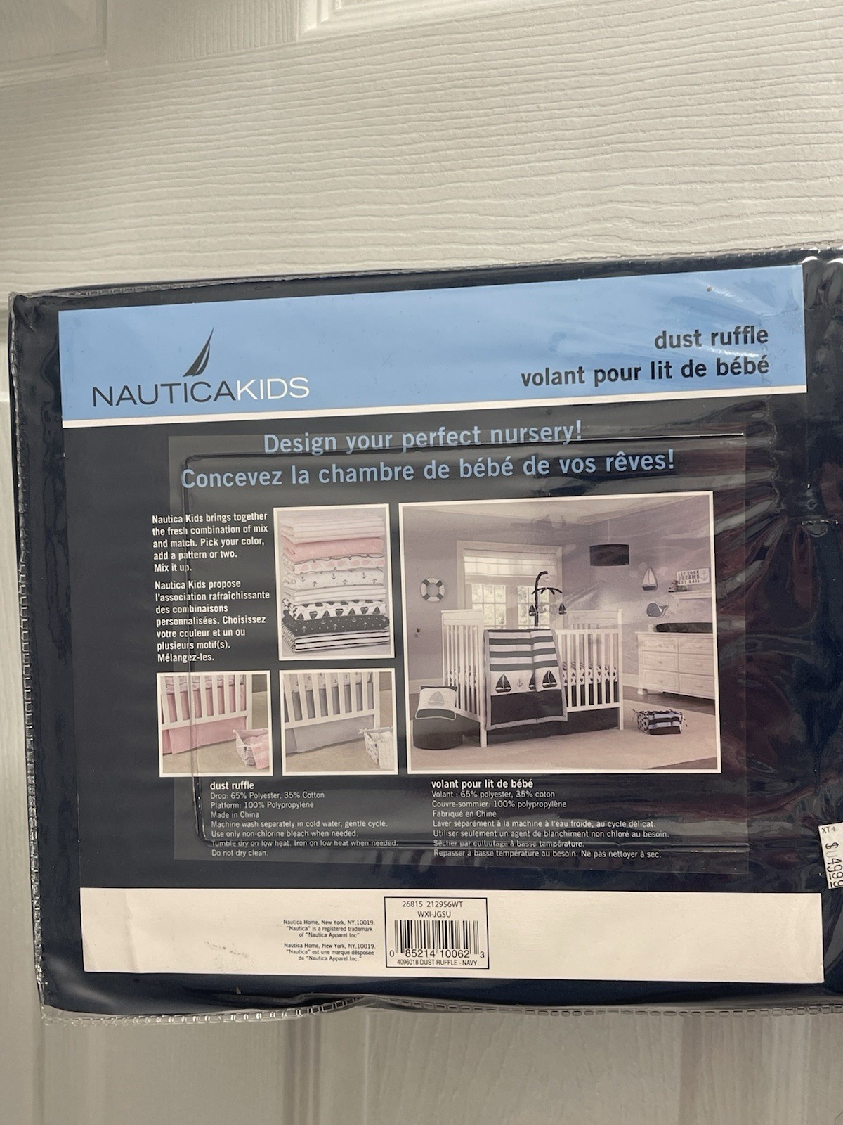 New Nautica Kids Navy Blue Crib Dust Ruffle Bed Skirt- Dust Ruffle