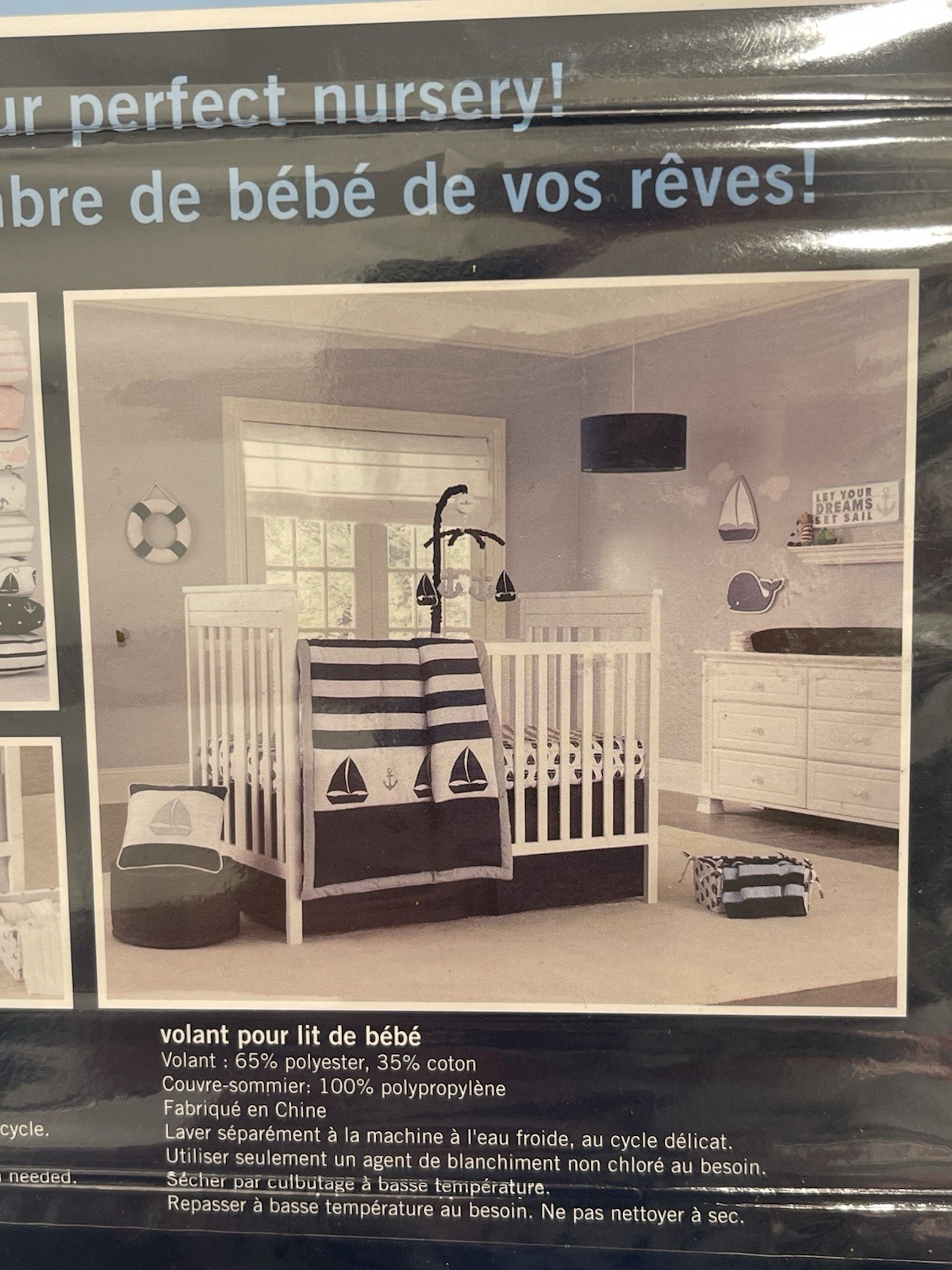 как выглядит New Nautica Kids Navy Blue Crib Dust Ruffle Bed Skirt- Dust Ruffle фото