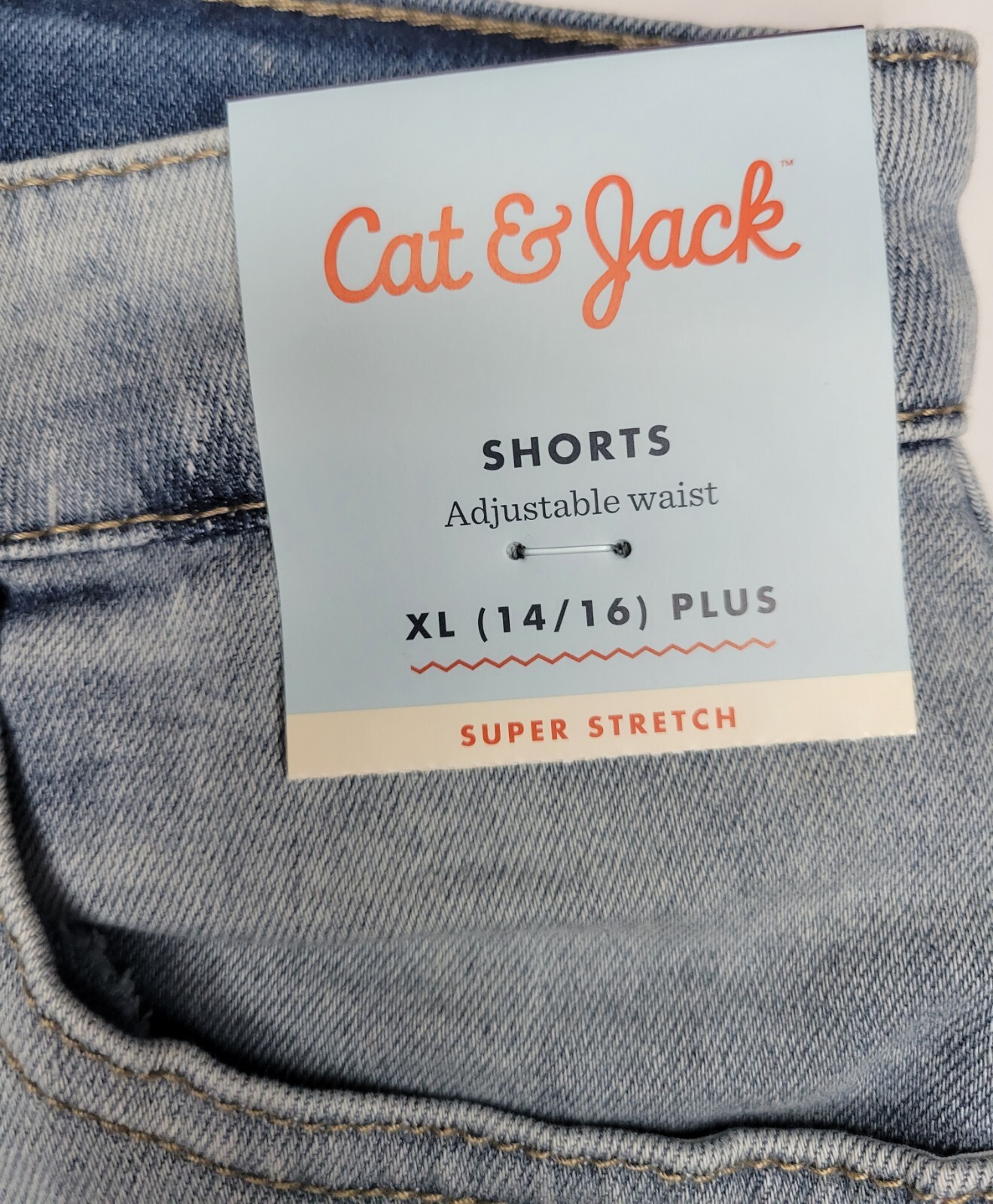 Cat Jack Girls Size XL 14/16 Plus Denim Shorts Stretch Cuffed Embroider New