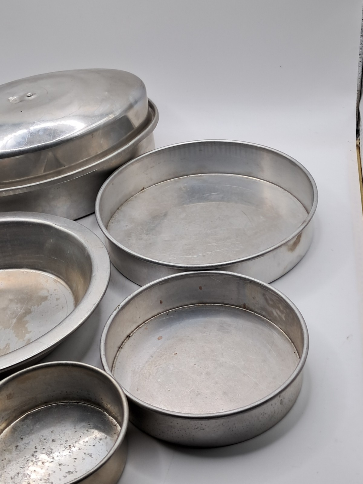 как выглядит Vintage Toy Kitchen Lot Easy Bake Oven Metal Cake Pans and Misc Roaster W Lid фото