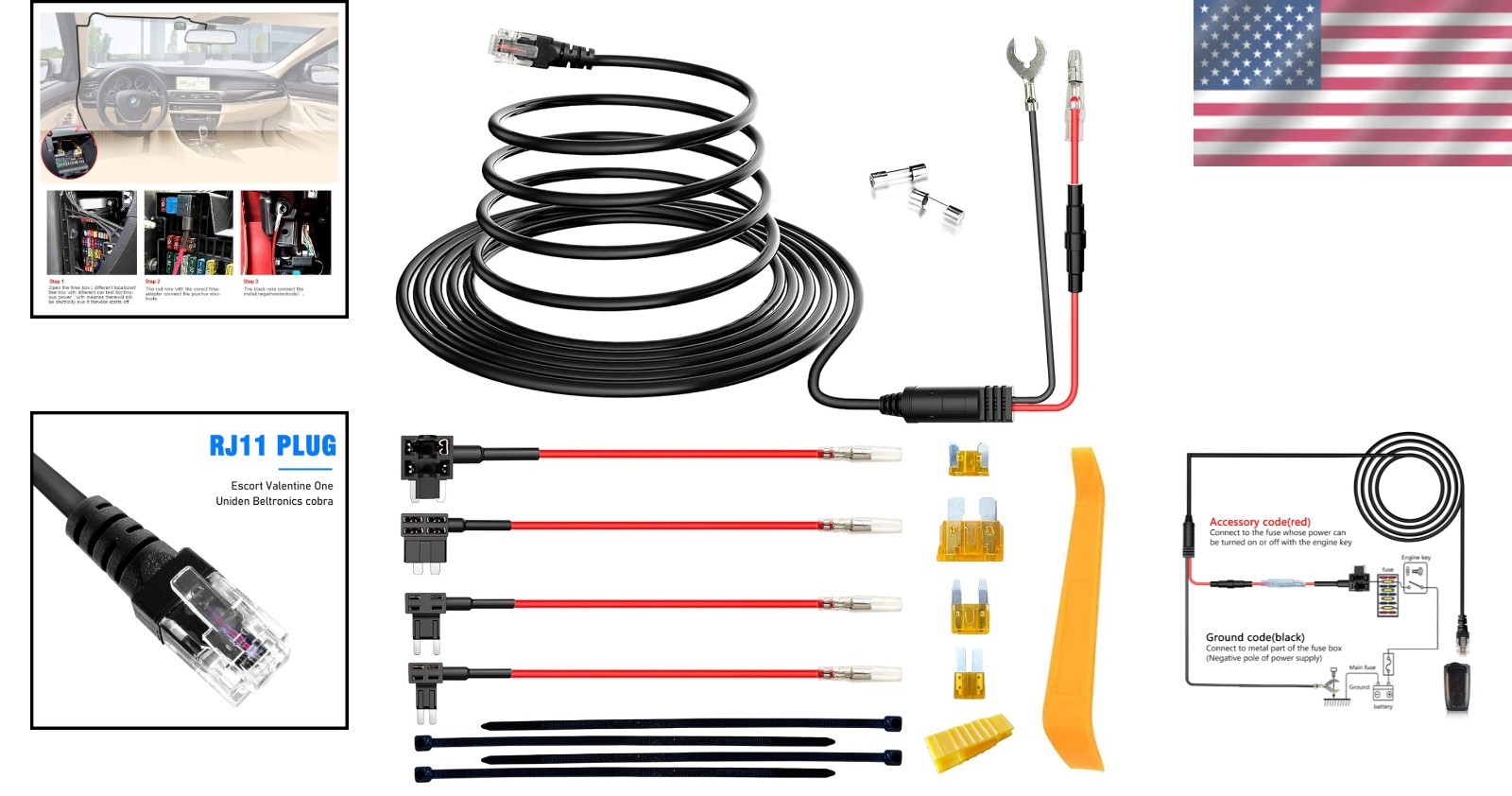 Durable Radar Detector Hardwire Kit - 13FT RJ11 for Seamless Power Connection