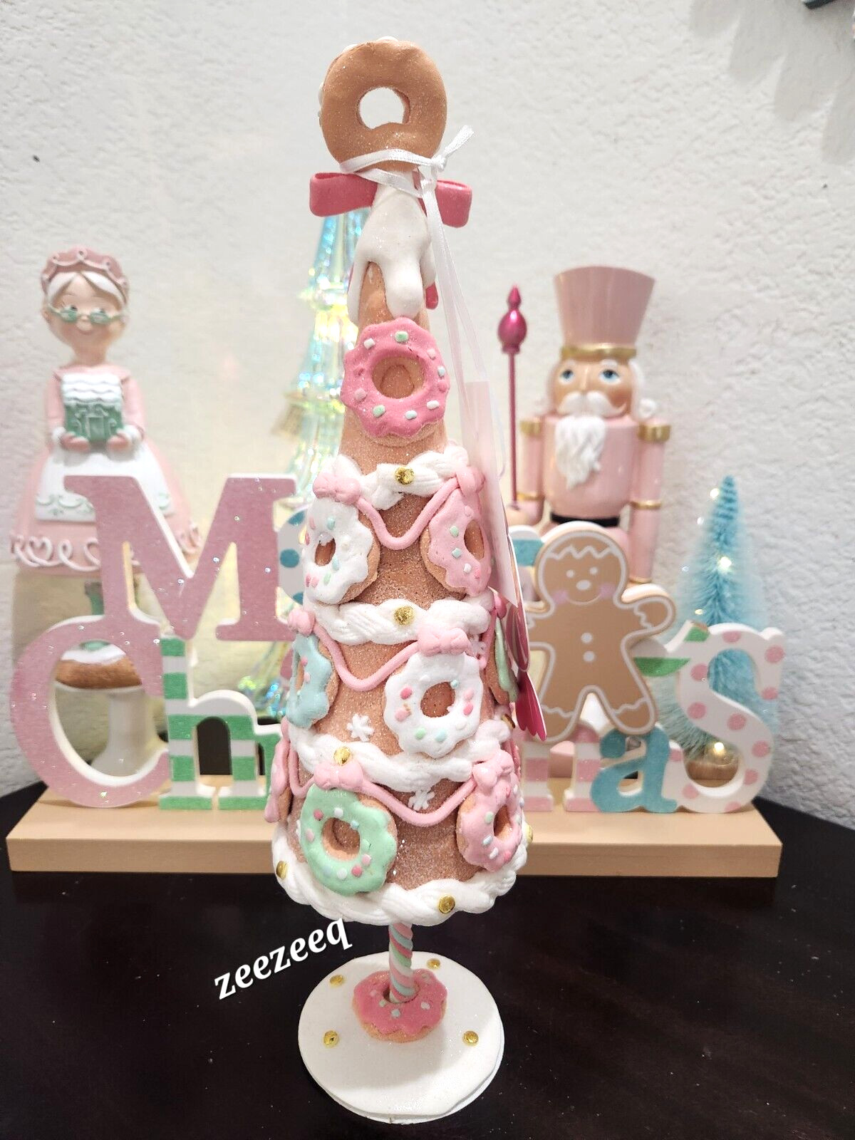 как выглядит CHRISTMAS Cupcakes and Cashmere Donut Candy Gingerbread Tree Figurine 14" фото