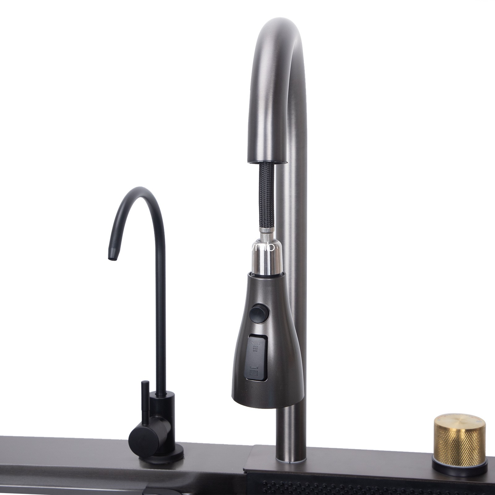 Single Bowl Sink Flying Rain Stainless Steel Waterfall Kitchen Sink with Faucet
