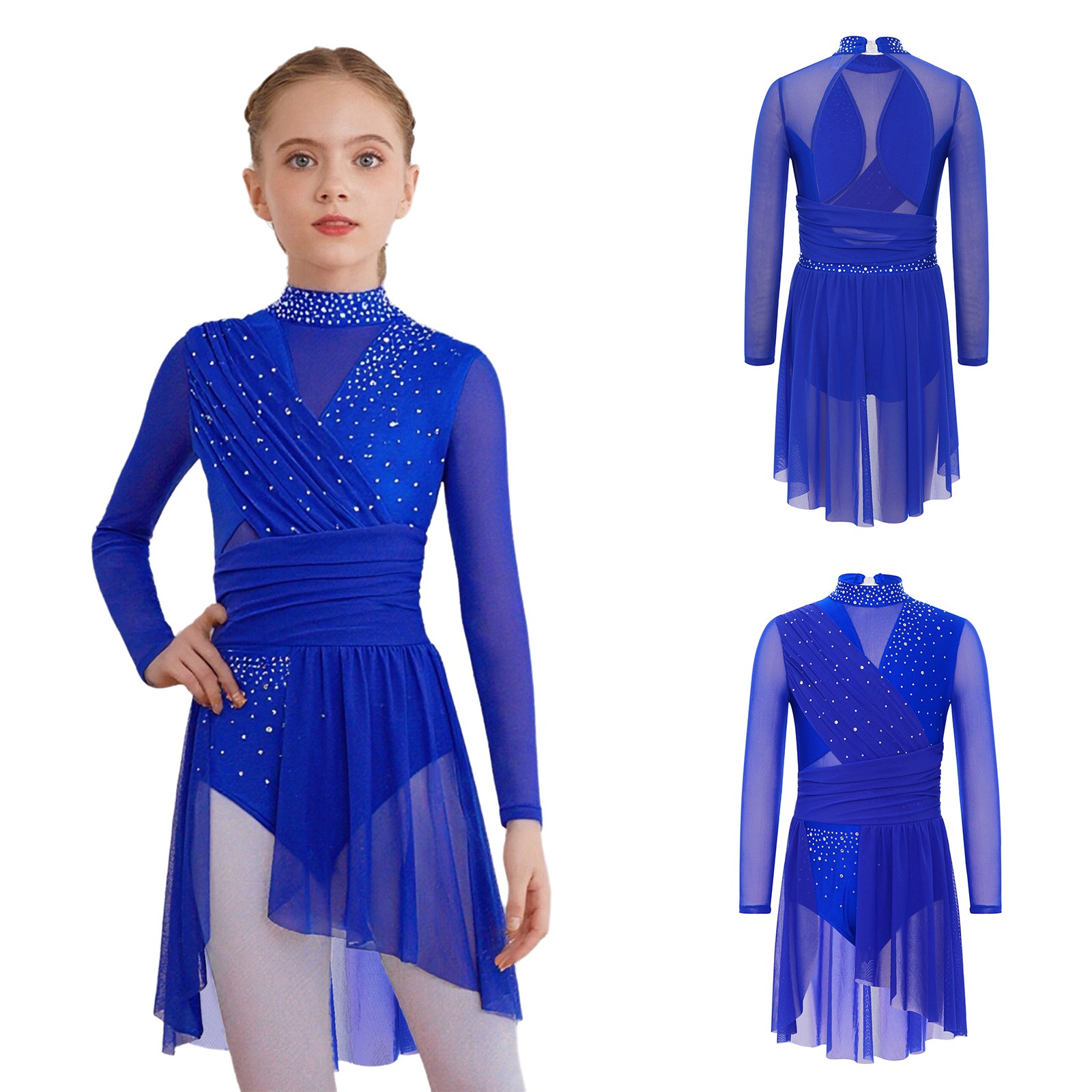Kids Girls Dress Side Split Dancewear Ballroom Costume Leotard Lyrical Jazz