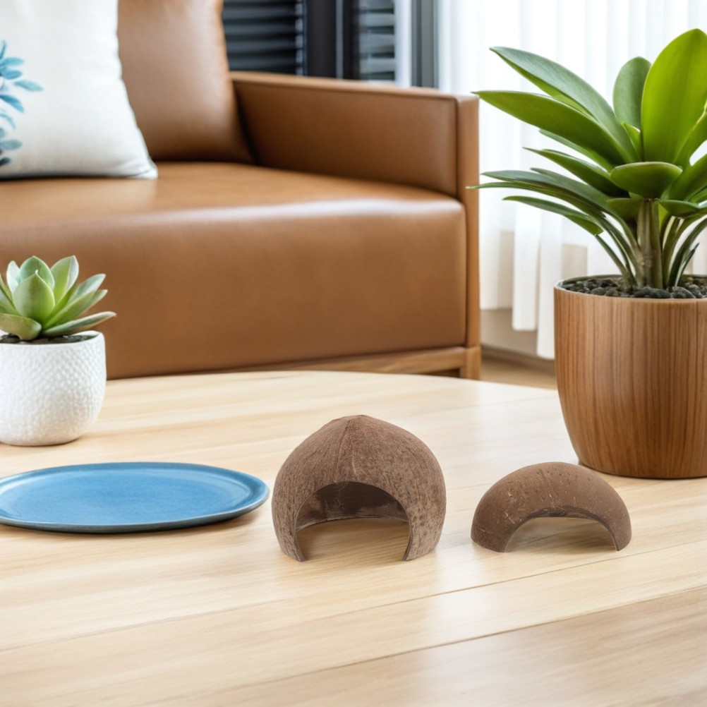 4pcs Coconut Reptile Hideouts - Aquarium Fish Hide Cave Hideaway for Snake
