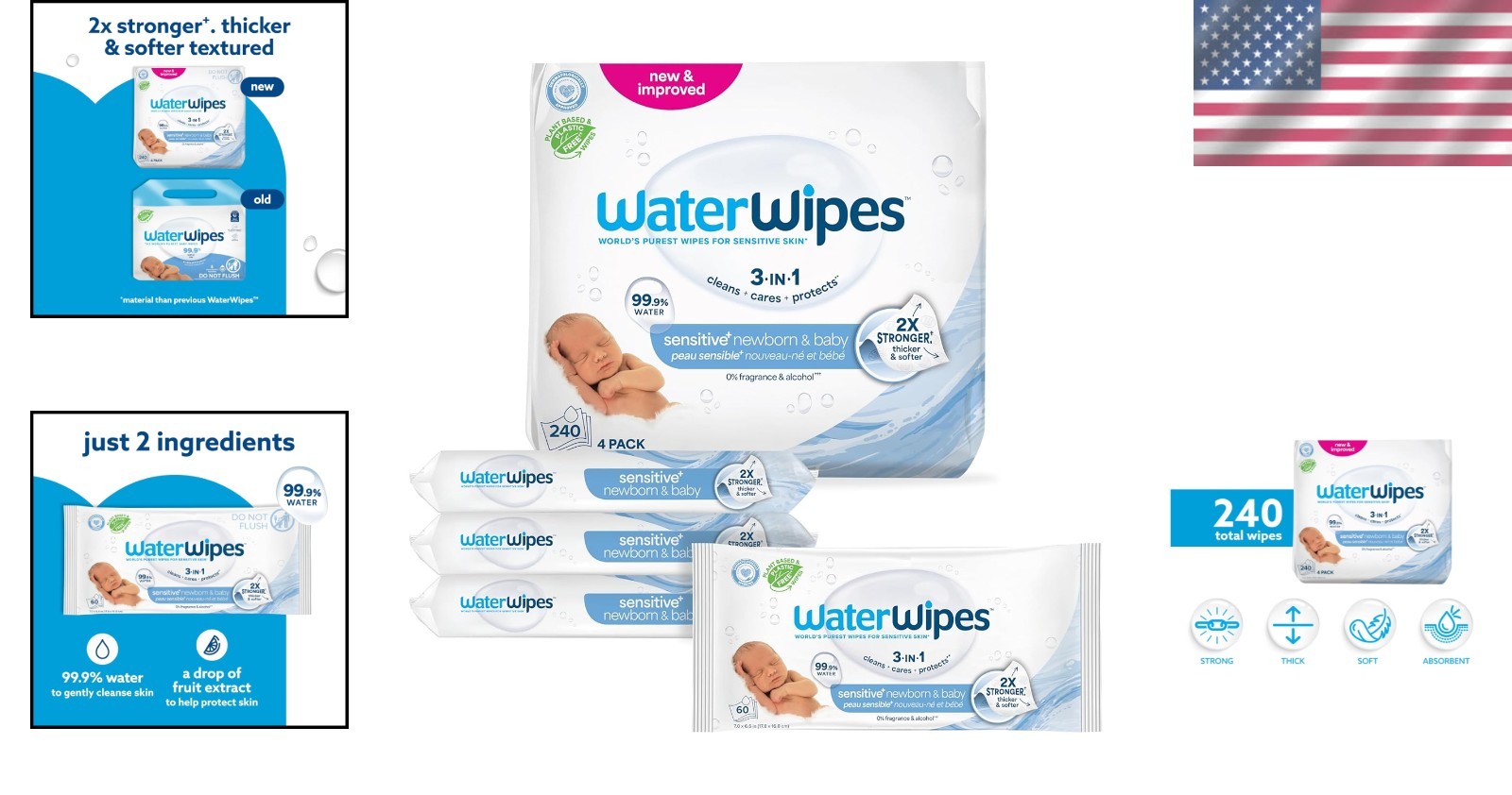 Newborn Baby Wipes 240 Count - Soft, Unscented, and 2X Stronger Protection