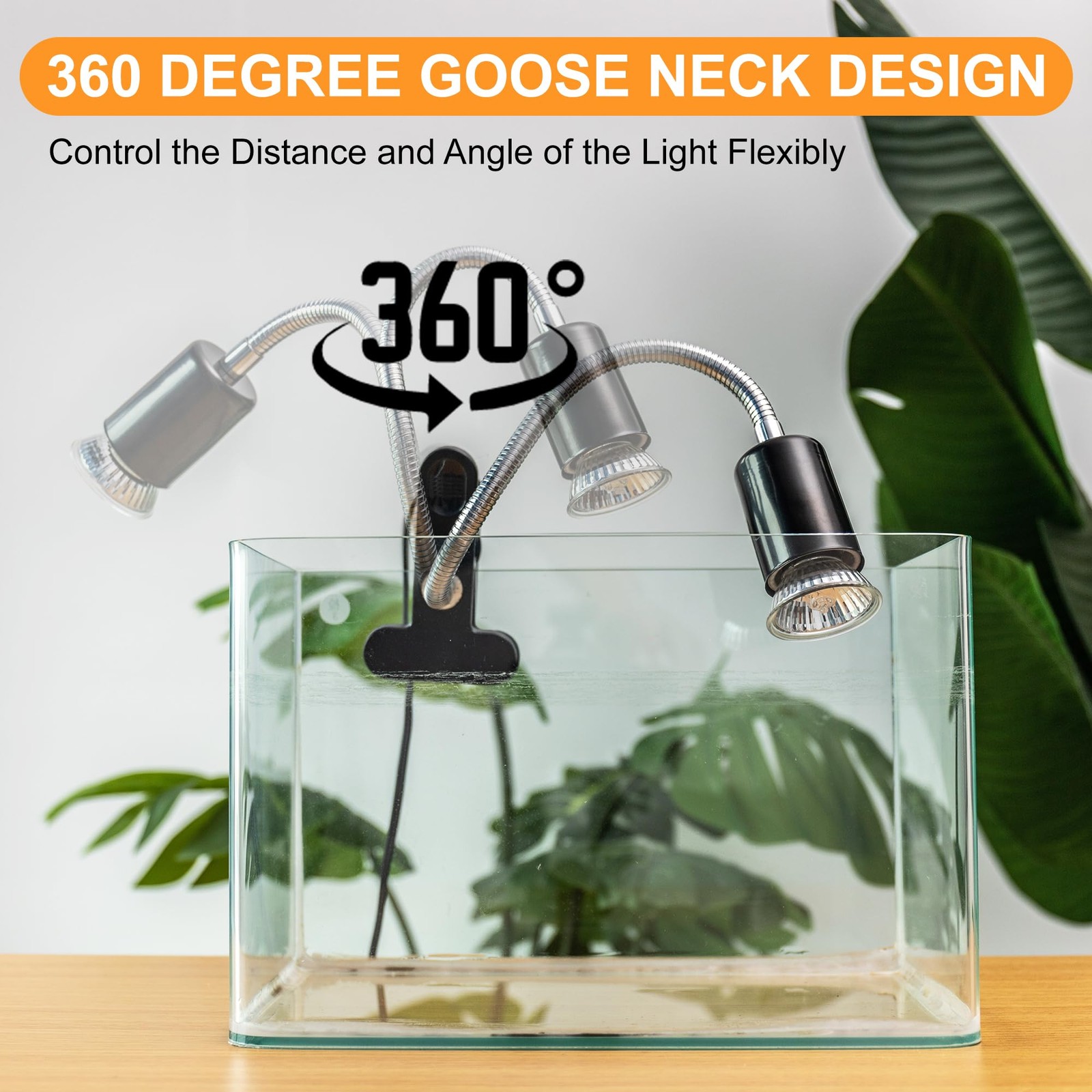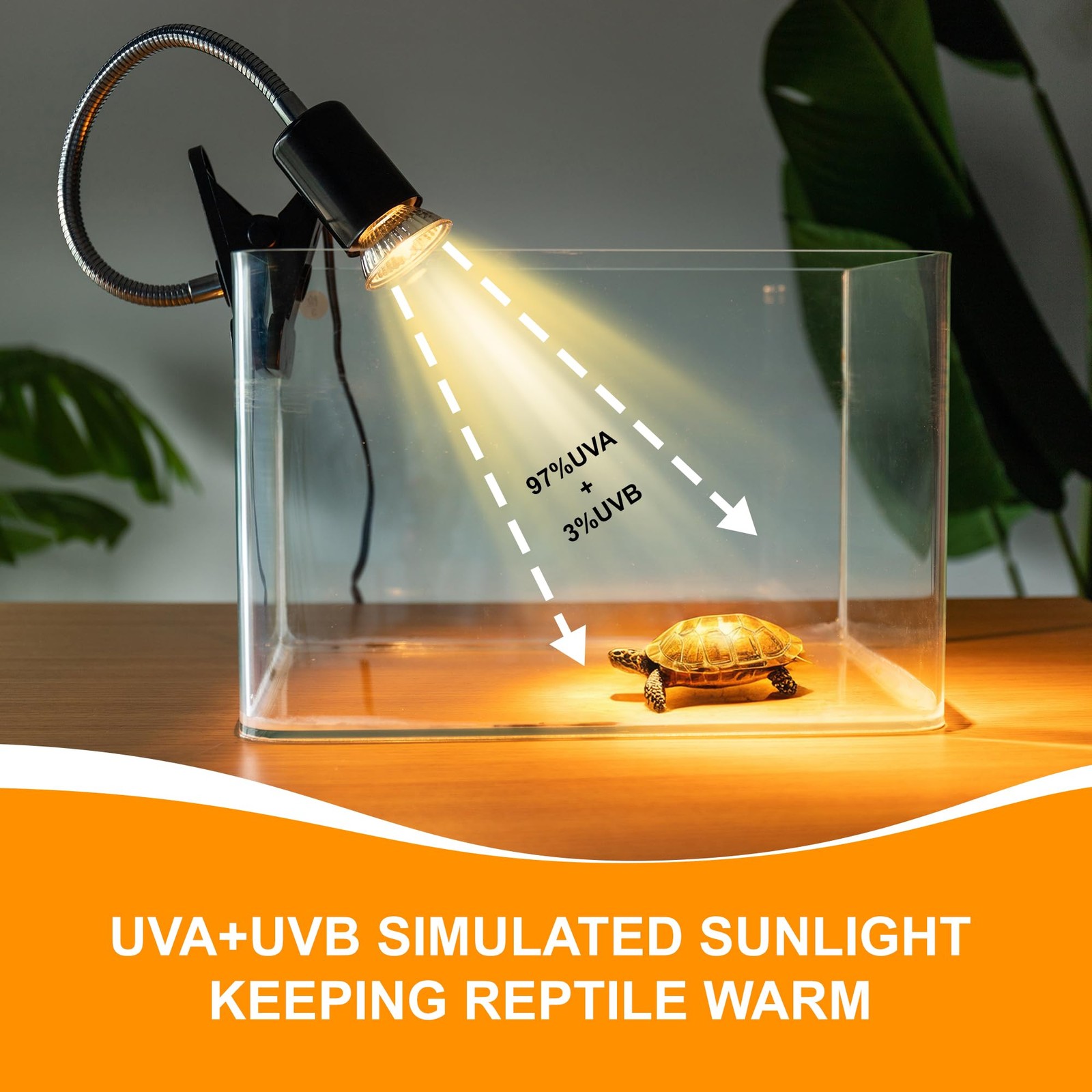 Reptile Heat Lamp, 50W UVA UVB Bulb, 360 Rotatable Clip, Turtle Basking Light