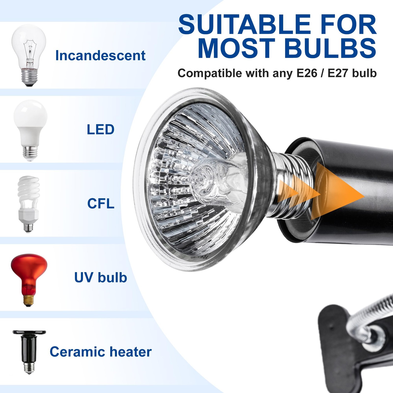как выглядит Reptile Heat Lamp, 50W UVA UVB Bulb, 360 Rotatable Clip, Turtle Basking Light фото