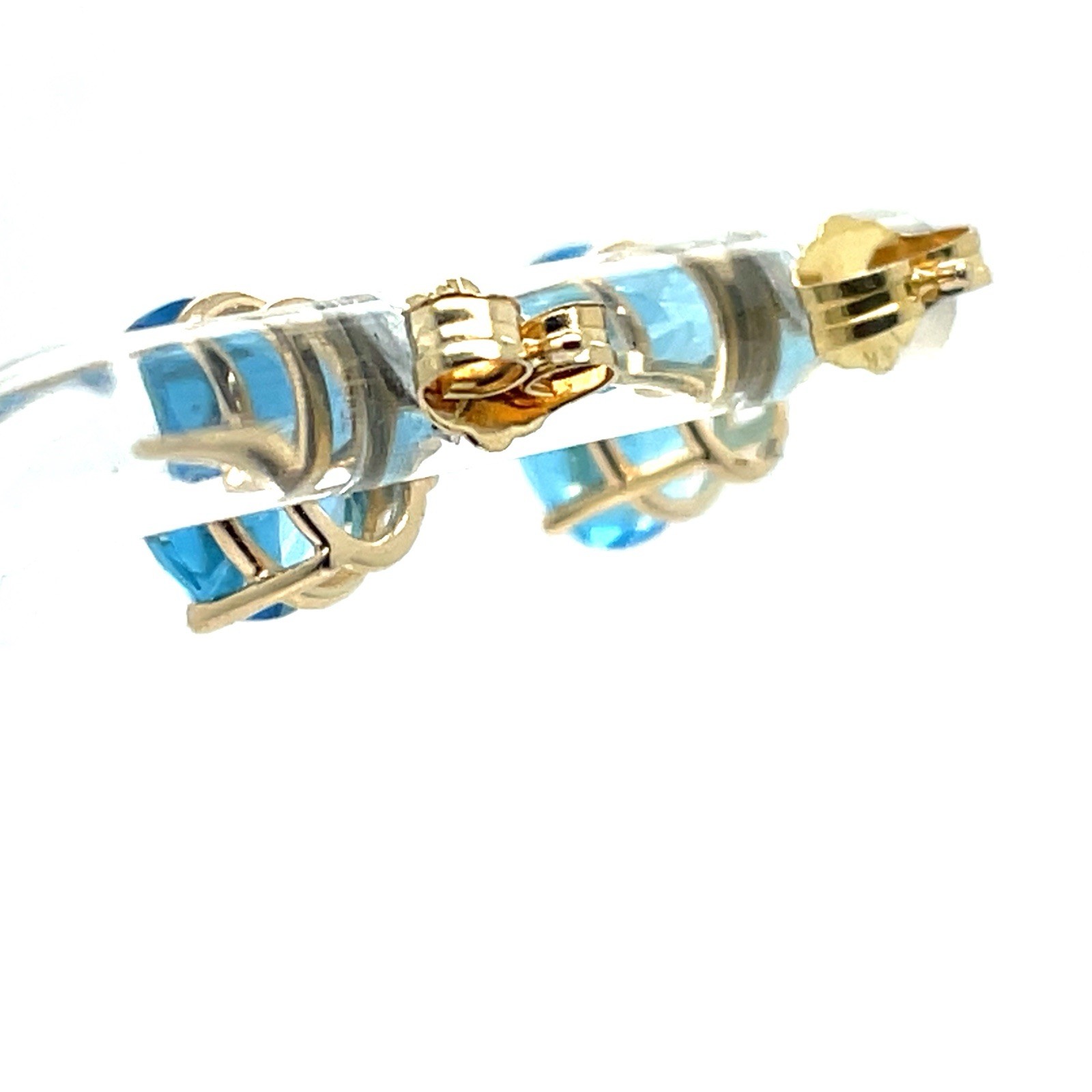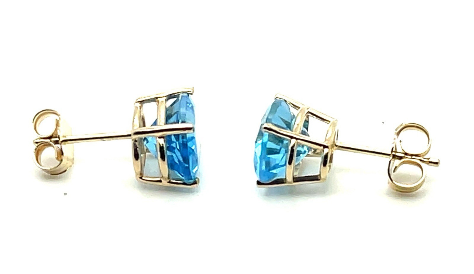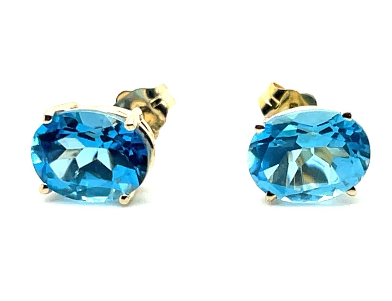 14K Yellow Gold 4.5 Ct Tw Oval 9x7mm Blue Topaz Gemstone Stud Earrings 2 Grams