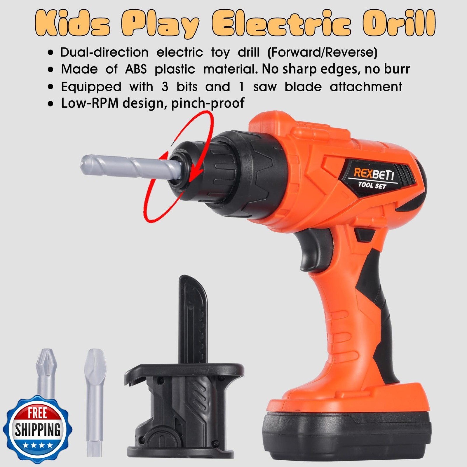 REXBETI Kids Tool Set with Tool Box and Electronic Toy Drill, Pretend Play Ki