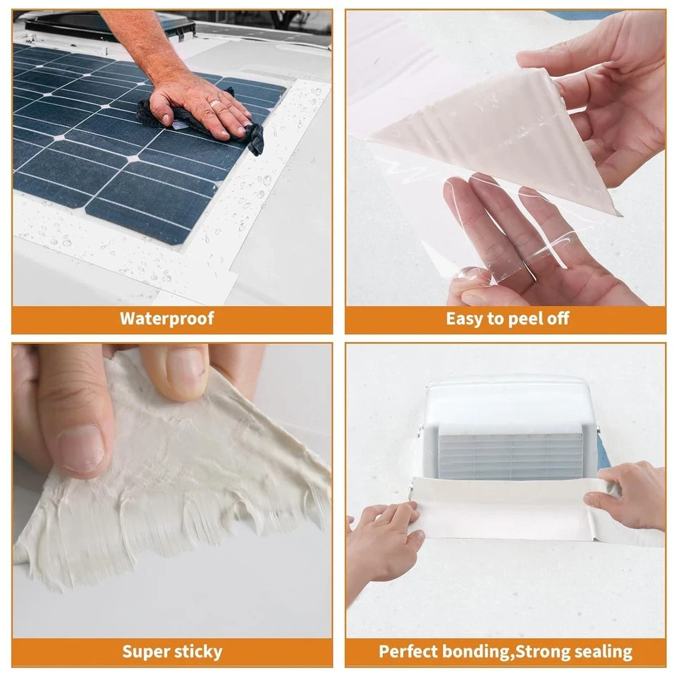RV Roof Tape with Roller, 4 Inch x 50 Feet Sealant Repair Tape, UV white