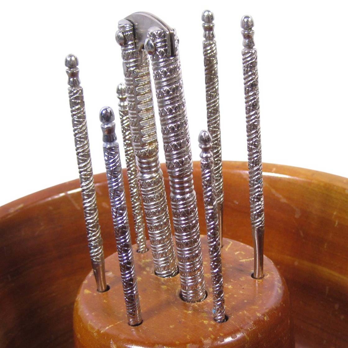 как выглядит Vintage Extra Large Turned Wood Nut Bowl With Nutcracker and Picks MCM фото