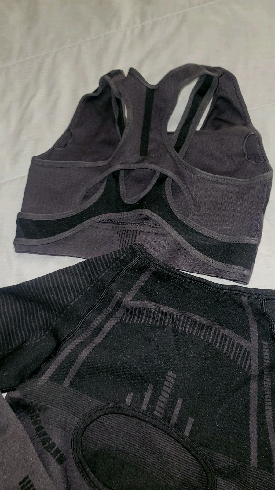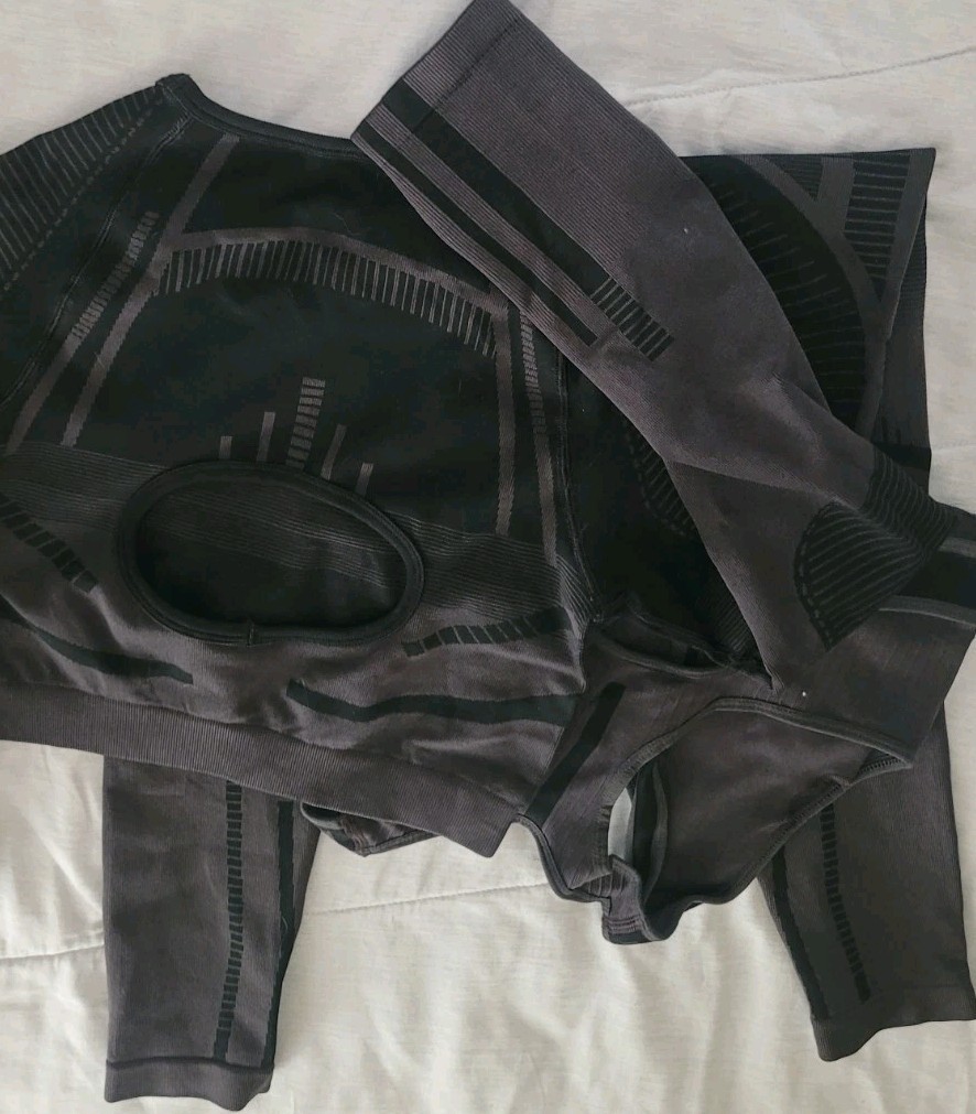 как выглядит Gymshark Carbon 3pc Set Leggings Long Sleeve Sports Bra Black/Grey Sz Small фото
