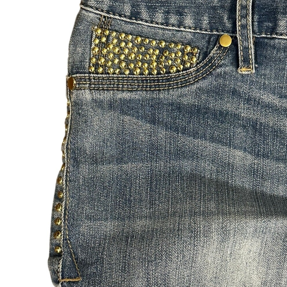 NWT Cache Studded Embellished Ankle Jean Gold Button Hem Blue Denim Women Size 6