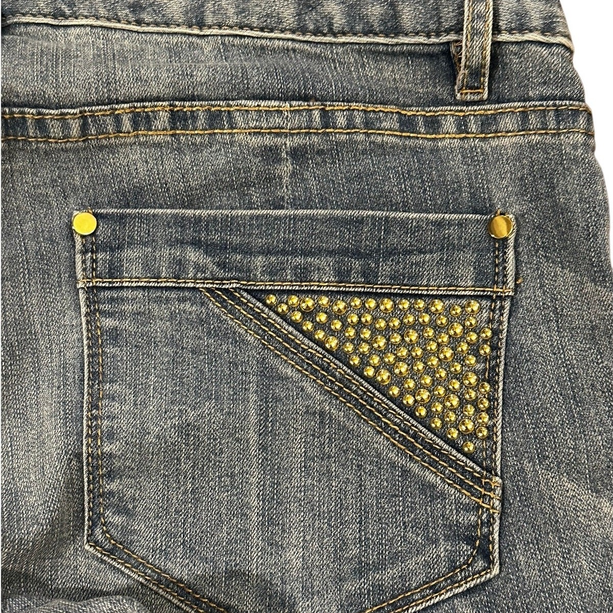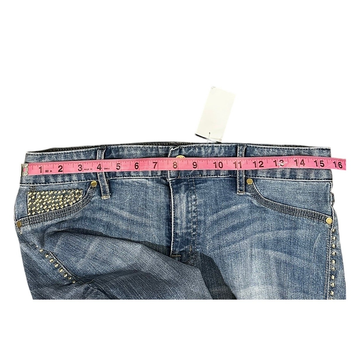 как выглядит NWT Cache Studded Embellished Ankle Jean Gold Button Hem Blue Denim Women Size 6 фото
