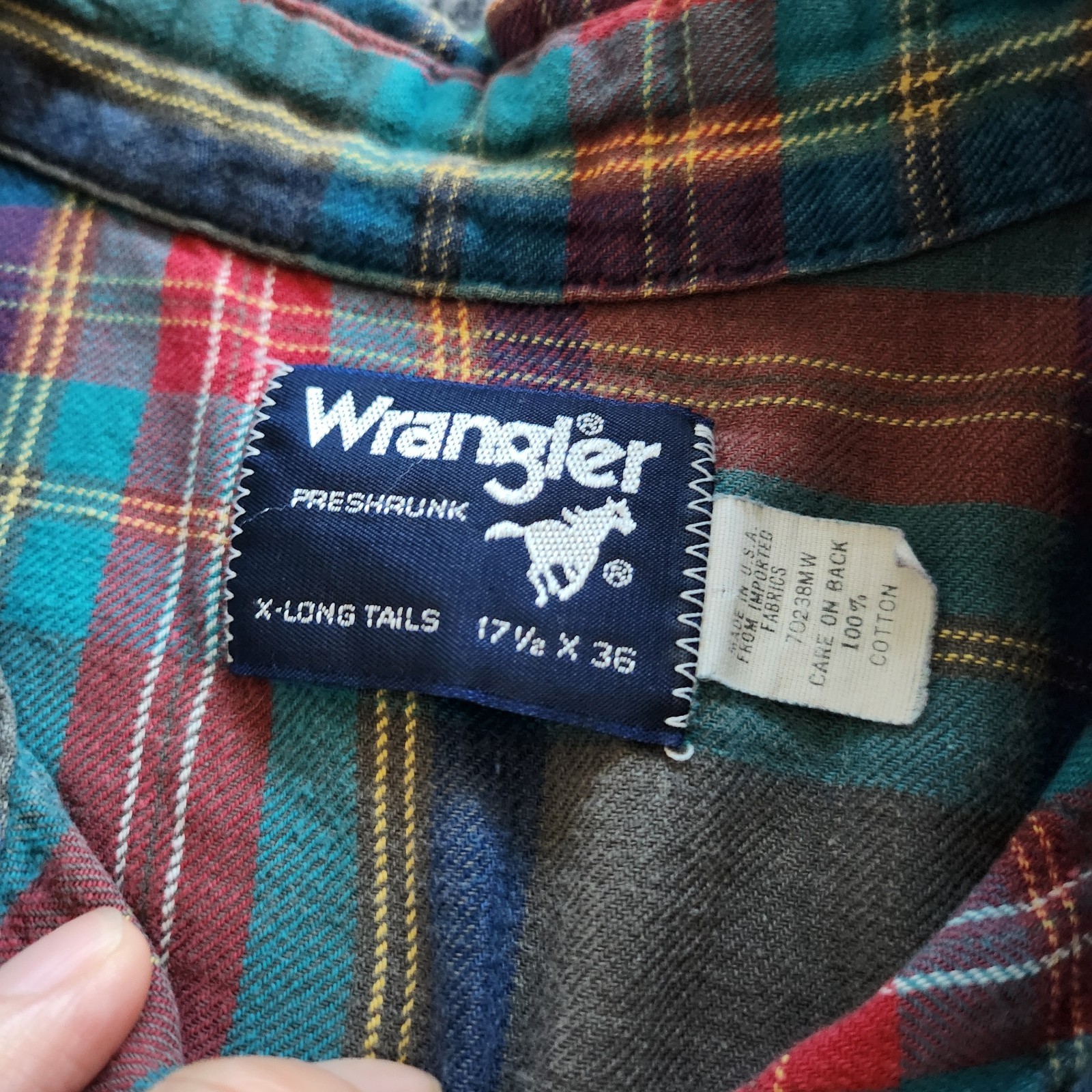 как выглядит Vintage 90s Wrangler Pearl Snap Plaid Button Up Shirt Size XL long tail фото
