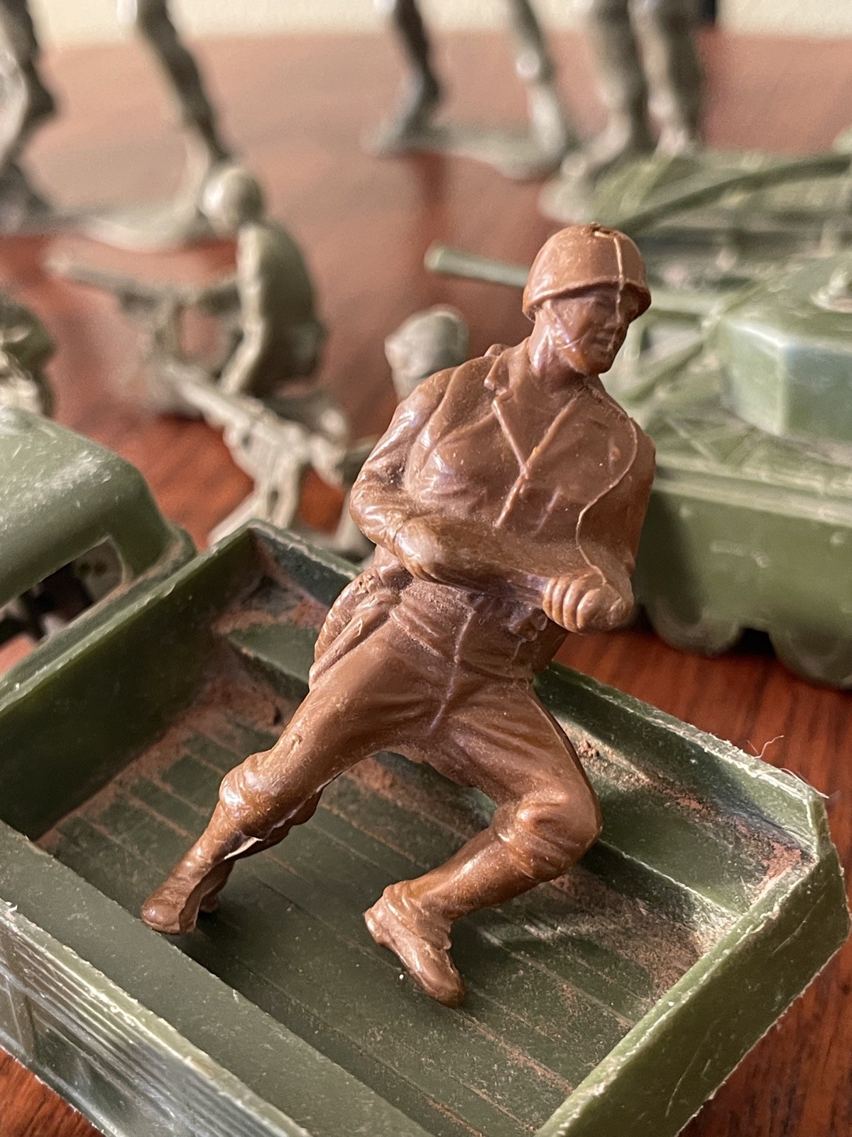 как выглядит Vintage Lot WW2 Plastic Army Men Soldiers, Tanks, Jeeps, 5 inch Louis Marx фото