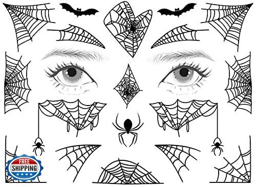 Spider Face Tattoos, 6-Sheet Face Spider Web Mask Prank Temporary Tattoo Stic