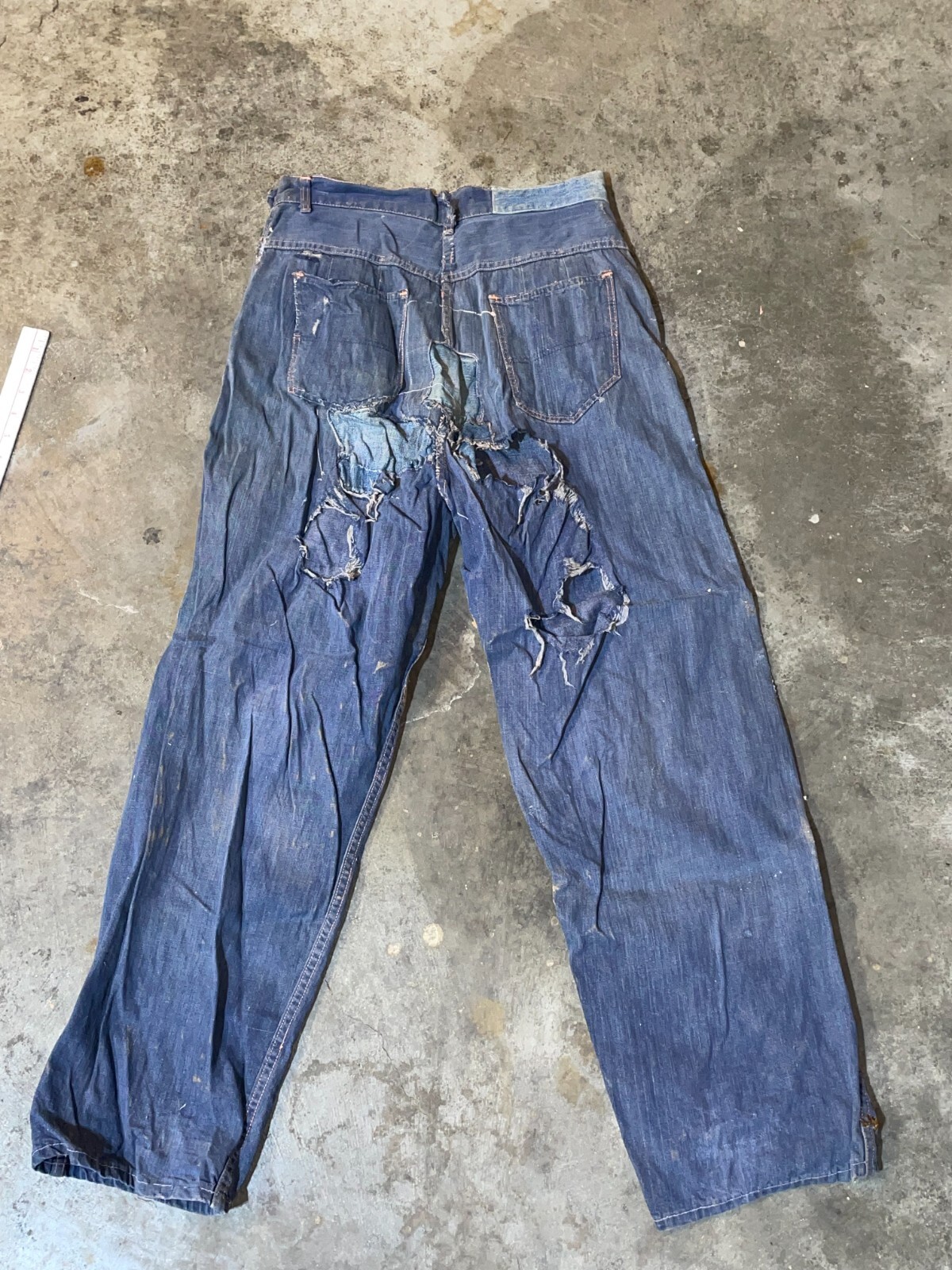 как выглядит Vtg 1950s RANCH CRAFT Side Zip Denim 28x27 JEANS Distressed Patches Rockabilly фото