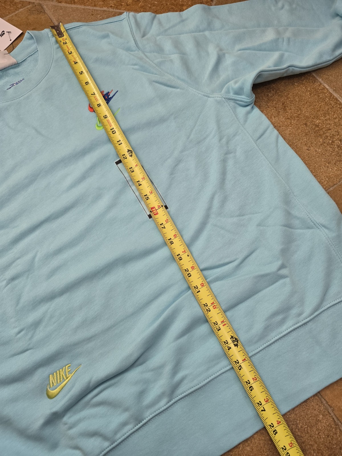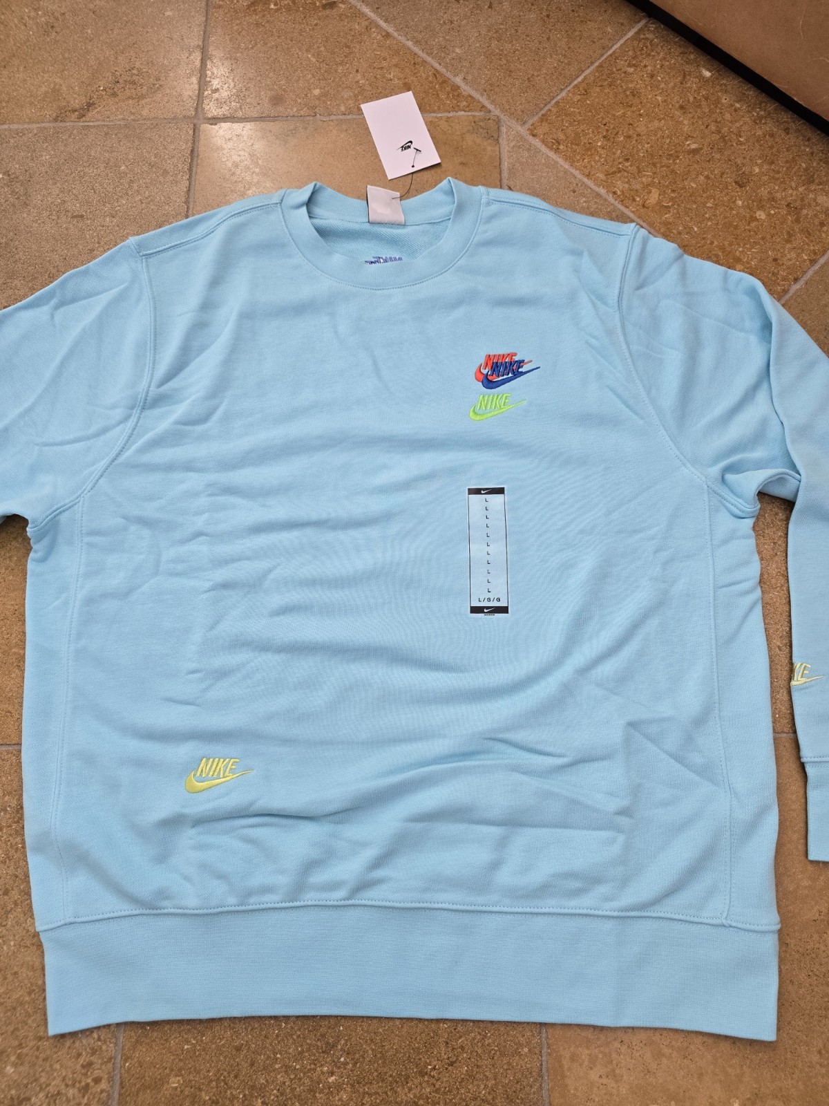 как выглядит Nike Sportswear Logo Crew French Terry Sweatshirt Men Large DR9153-482 Teal Blue фото