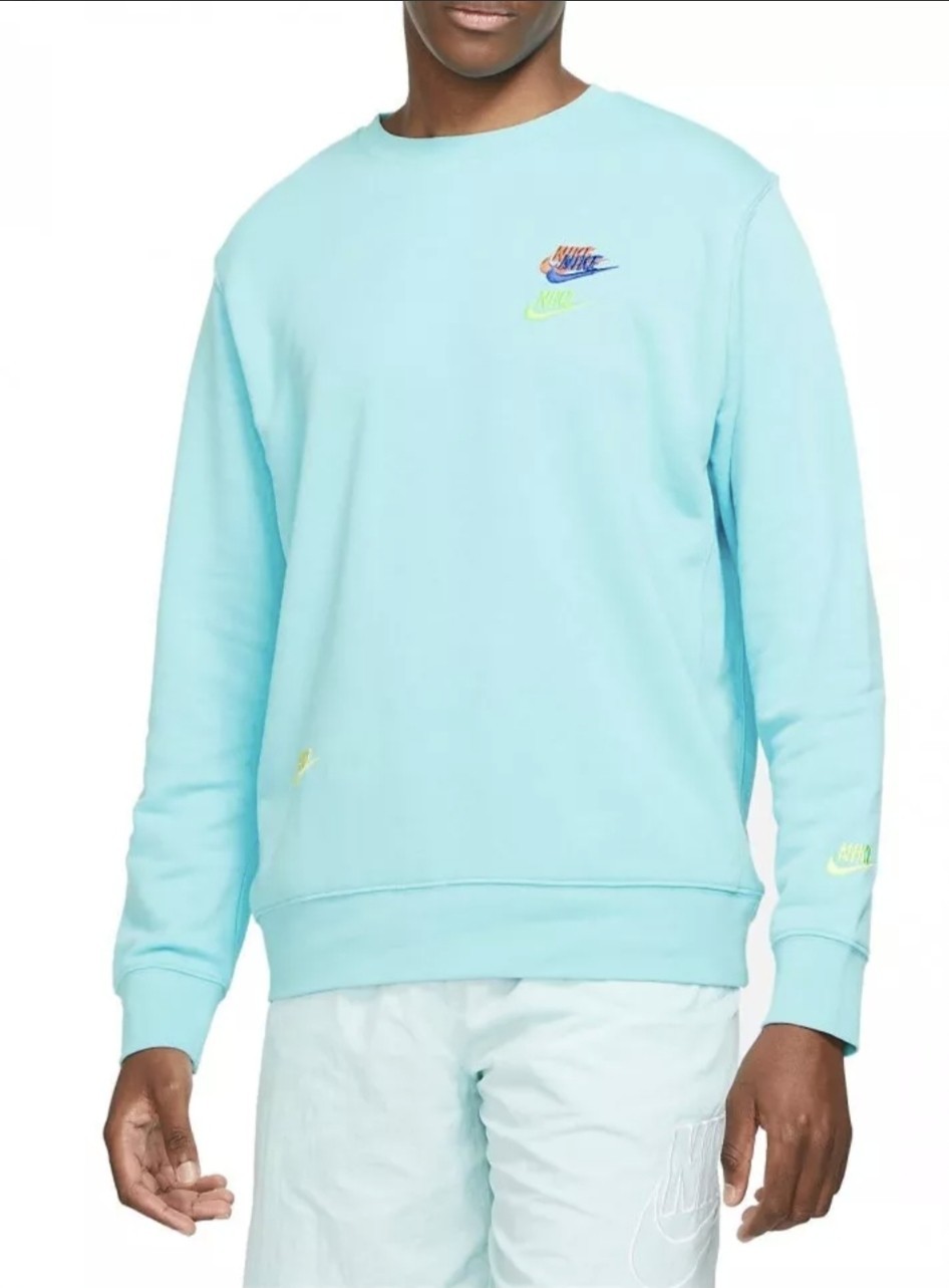 Nike Sportswear Logo Crew French Terry Sweatshirt Men Large DR9153-482 Teal Blue