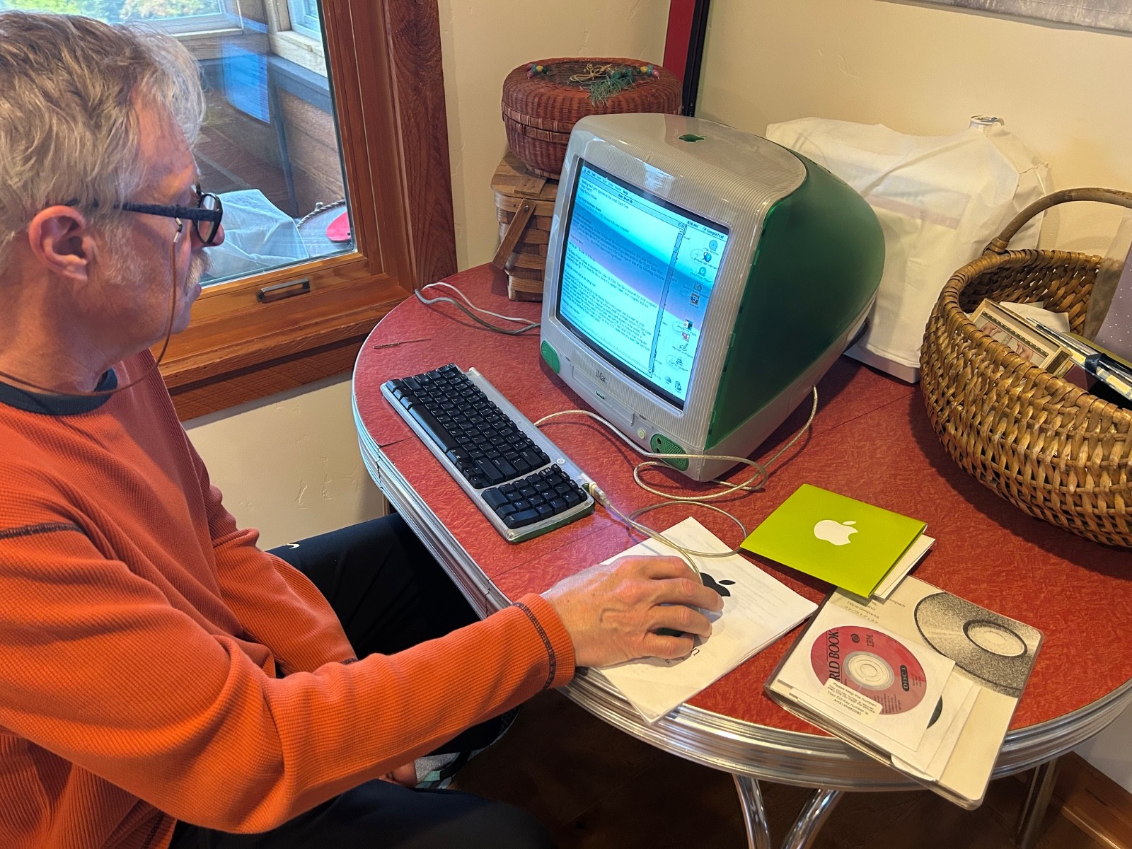 1999 Apple iMac G 3 Gumdrop Green computer with discs keyboard mouse