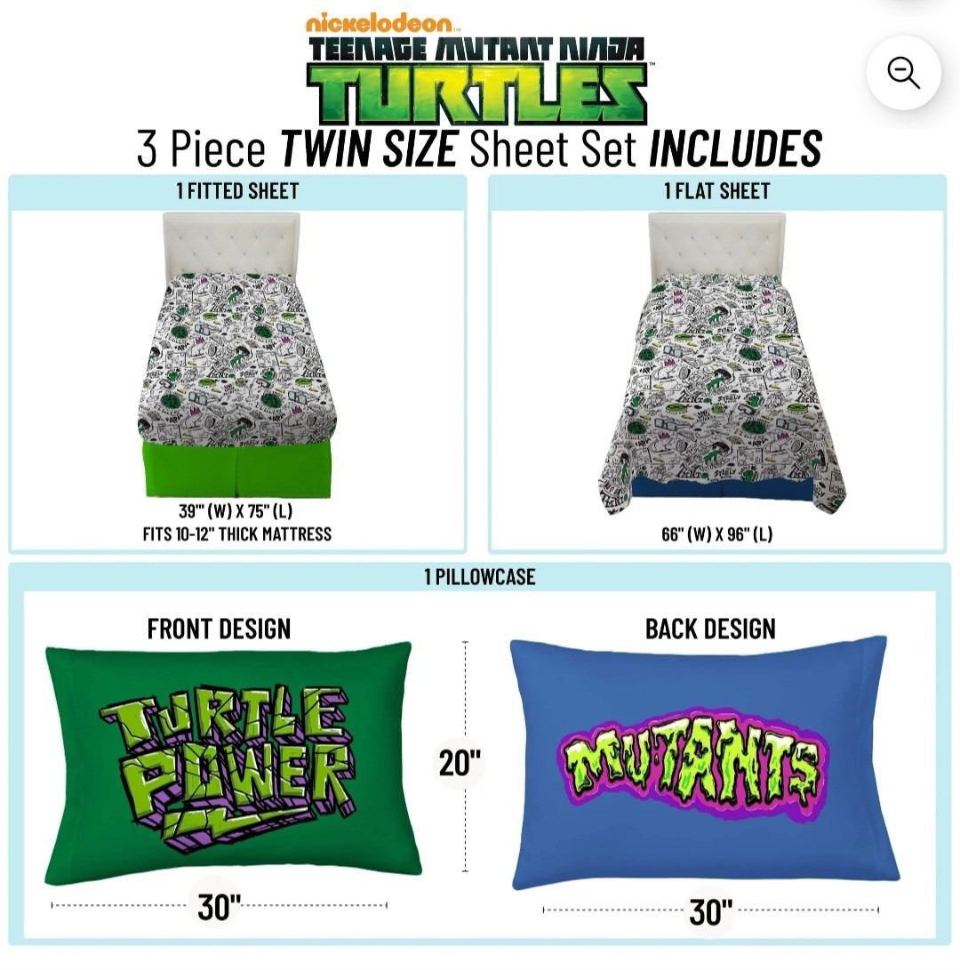 Teenage Mutant Ninja Turtle Kids 3-Piece Twin Sheet Set, Microfiber/New