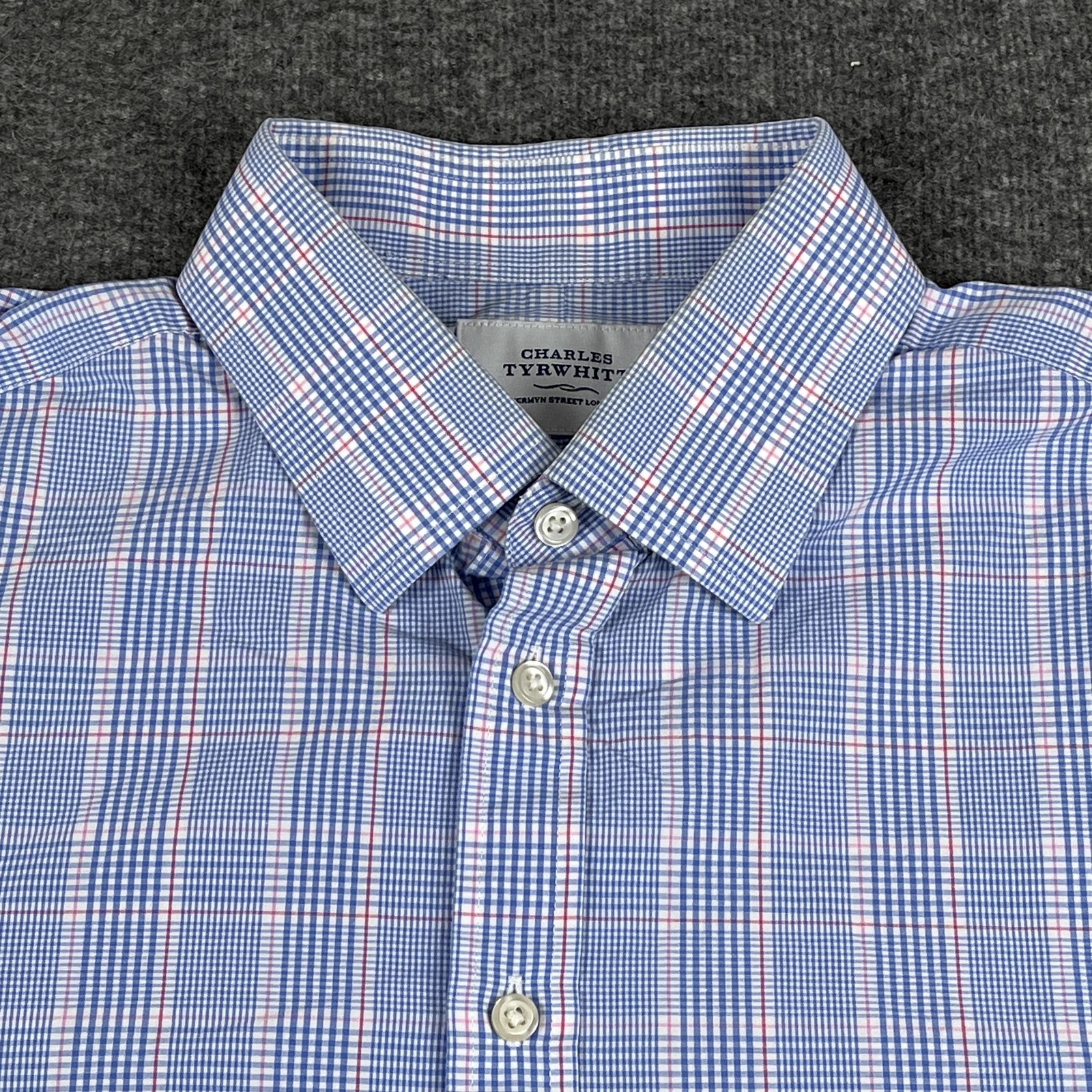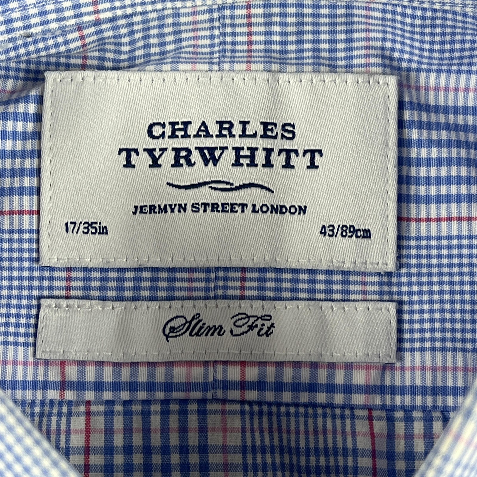 как выглядит Charles Tyrwhitt Shirt Mens 17/35 Blue Check Plaid Slim Fit Dress French Cuff фото