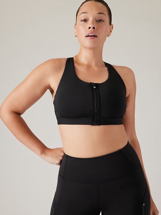 как выглядит ATHLETA Ultimate Front Zip Bra Cups A-C in Black - Size Small фото